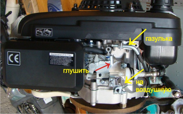 Вот про это и разговор!. Нет такой техники. Газ на этих моторах регулируется чентробежно. А воздушная - от троса, куда ты и зацепился.