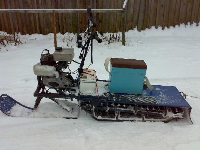 Застыла тема, пора оживить! Денег на строительство мотобуксировщика выкроить сложно, опять же громоздкий он однако, места занимает много и тяжелый. Если делать такой же лёгкий и малогабаритный палочник как у Андрея674, тяжело найти применение, разве что перевозить на нём рыболовный ящик, а самому следом на лыжах и то сомнительно! Начинаю считать, сколько потребуется материалов, для мало-мальски пригодного для перемещения по утоптаному снегу буксировщика палочника с самодельной гусёй: двигатель, катки от бурана 4шт, звёздочка пластмассовая на гусю бурана 4шт, буксы с подшипниками 4шт, листовое железо 400х1000х2, полоса стальная для перфарации, лента транспортёрная 350х8х2500, профилированная труба 20х20х2 (на грунтозацепы, раму, руль), центробежное сцепление (сухое), промежуточный вал со звёздами подшипниками и буксами, ведомая шестерня колеса, цепей 2шт, трос газа с ручкой, грунт, эмаль, метизы (болты, гайки, шайбы, пружины), и это не полный список необходимого материала для постройки. Как выяснилось, транспортёрная лента продаётся по 10 долларов за пагонный метр, но минимальная длинна для покупки составляет 102 метра, вот засада! От промвала и центробежного сцепления можно отказаться, но тогда придётся доплатить за двигатель с редуктором, хотя доплата ничтожна в сравнении с дополнительными хлопотами связанными с использованием первого варианта. Получается, что если изготавливать самостоятельно, по цене выходит не на много дешевле фабричного, да ещё и по качеству уступать будет!ИМХО. К сожалению не получается сьэкономить также как с самодельным гибридом ПЛМ, вот и приходиться искать некую альтернативу, которая не так сильно ударяла бы по карману, была легче, меньше, и быстрее!