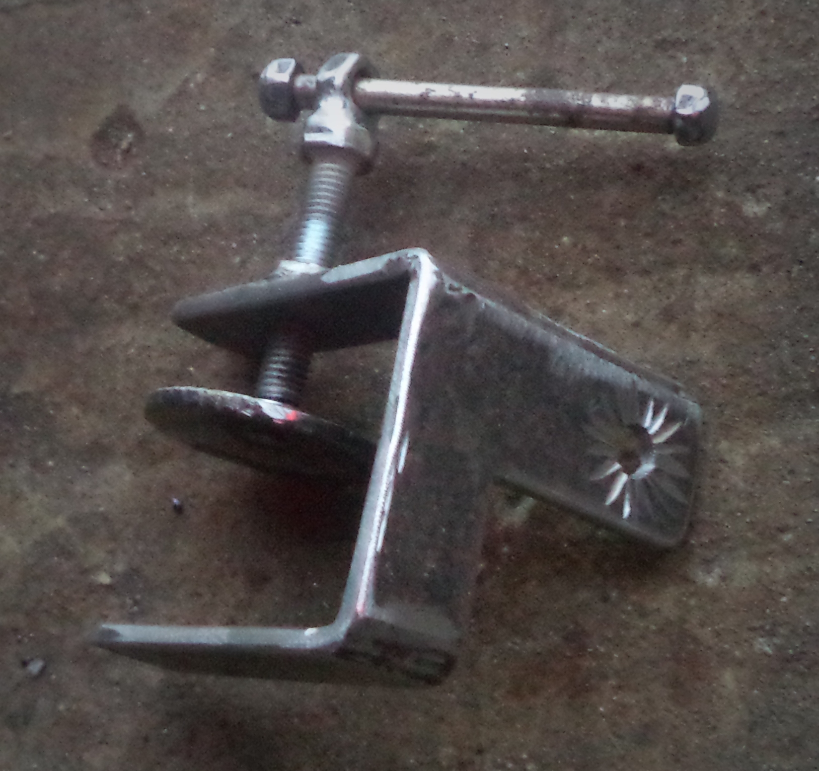 В качестве "донора" использовал кусок трубы 100х60х4 мм. Прижимную шайбу использовал от старого советского турника (были когда-то такие - устанавливались в дверной проём путём вращения перекладины). Думаю, комментировать не нужно - всё понятно по фото.