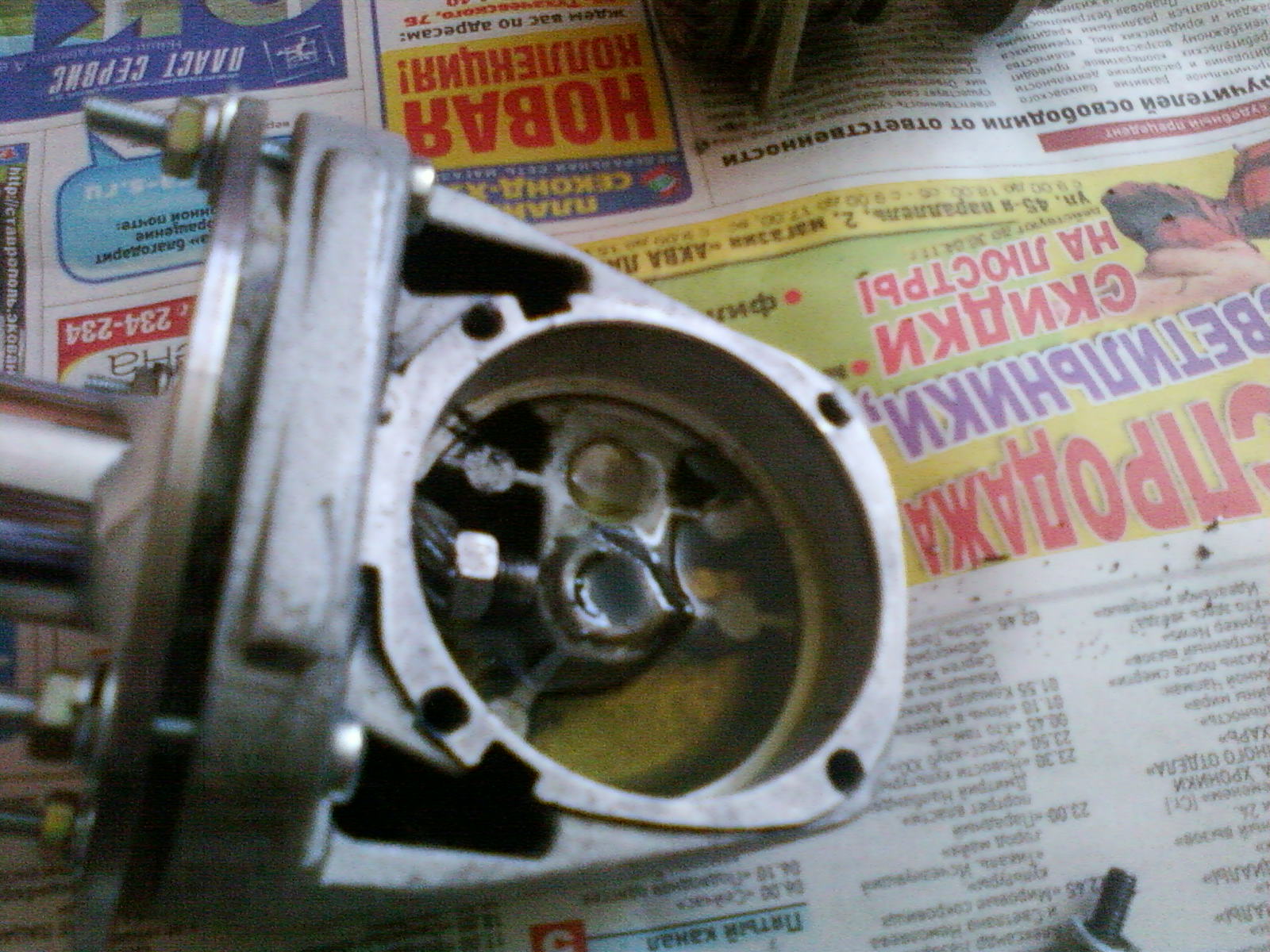 - фланец, увеличенный вторичный вал, посадочное место под сальник, резьба и болт для смены масла и стопора шестерни, гайка-шайба под винт, струбцина… обошлись в 300р. и 3 банки пива по 33р.