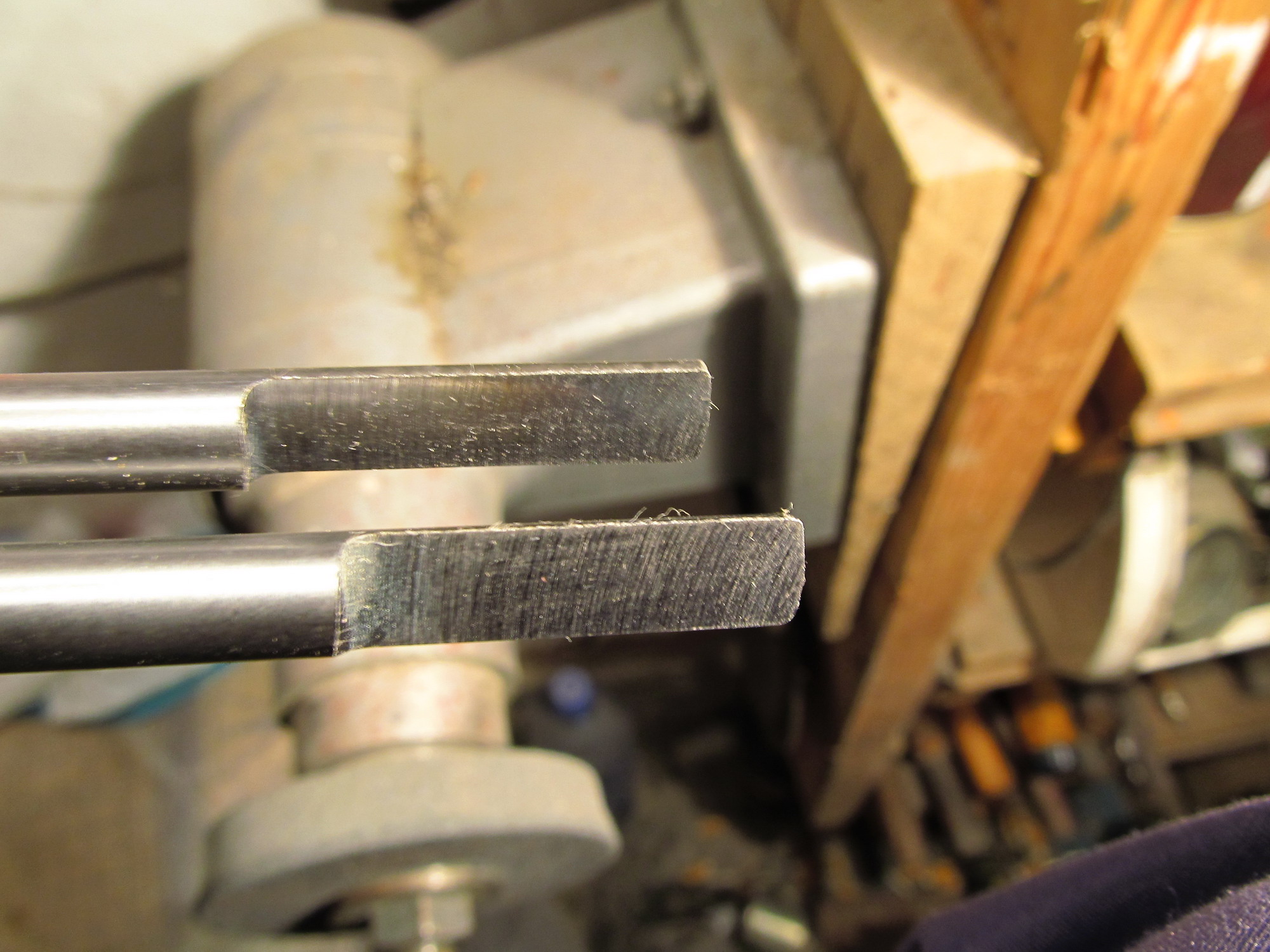Точится "ИлИмИнтарно" на том станочке, что внизу, главное чтобы боковая плоскость камня была ровная и не спеша аккуратно притачиваются обе поверхности, а проверить параллельность можно, приложив линейку!