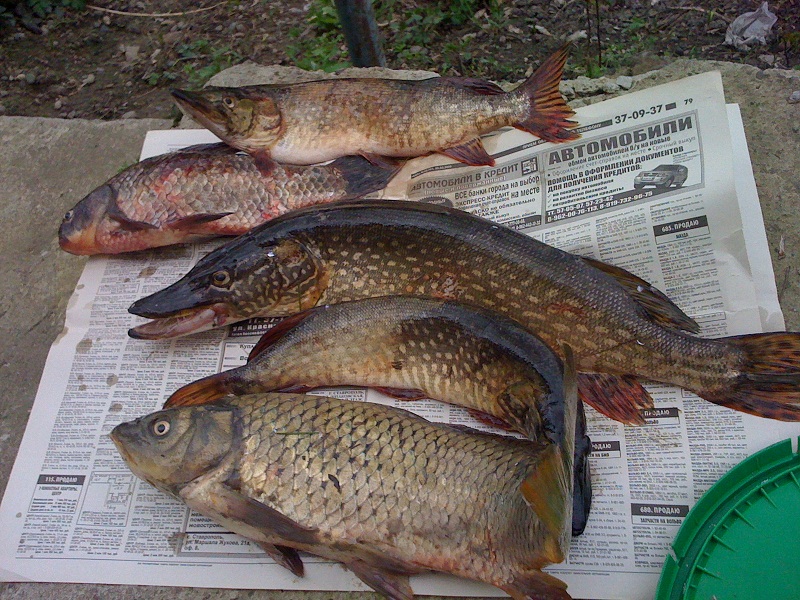 Часть улова. Разворот газеты типа "из рук в руки". Кстати, вверху карасик. такого размера не видел ни разу.
