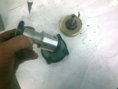 Связано с тем, что в данном узле нет устраивающей лично меня жесткости... :-) Вся моя "нога" сделана довольно точно, чаша сцепления и узел в котором она нахлдится вроде тоже, единственный "косяк" был в месте соединения. Покатавшись последний раз по водорослям, заметил что "голова" мотора может под нагрузкой отклонятся на некоторый градус в ту или иную сторону. Рулевой рычаг у меня довольно жесткий, можно провернуть "голову" мотора к которой он крепится даже воткнув редуктор по пластину в ил дна. Вот при подобных "критических" нагрузках в водорослях и переползании через "пятна" камыша стало иногда проявлятся "щёлкание" вала с квадратом, в квадратном отверстии чашки сцепления, выражающееся на малых оборотах в небольшом подёргивании на "ноге" самой "головы". Резиновую втулку, которую китайцы всунули для защиты пользователя триммера от вибрации выкинул нахрен. Там в самой посадке уже присутствует люфтик, а если еще нажать на сторону... "Методом выдува" получил вместо неё алюминиевую, к которой предварительно проточив, через отверстия приварил родную внутренюю трубку с зажимом на конце. В самом узле сцепления проточил по конусу в три ступеньки посадочное отв. Так как детали в результате "выдува" всегда получаются с прецезионными размерами, втулку с натягом в 3 сотки без проблем запрессовал в узел сцепления, сверху для страховки еще и стало на место родное стопорное кольцо.
