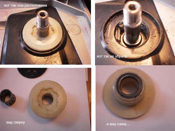 Под этой самой шайбой, должен быть масляный насос для смазки цепи, если не использовать мотор по назначению то в скором времени этот насос выйдет из строя, скушает капроновую шестерню, но ничего страшного при этом не произойдёт, может есть смысл удалить насос целиком или только спиральную проволоку, исполняющую роль приводной шестерни насоса.