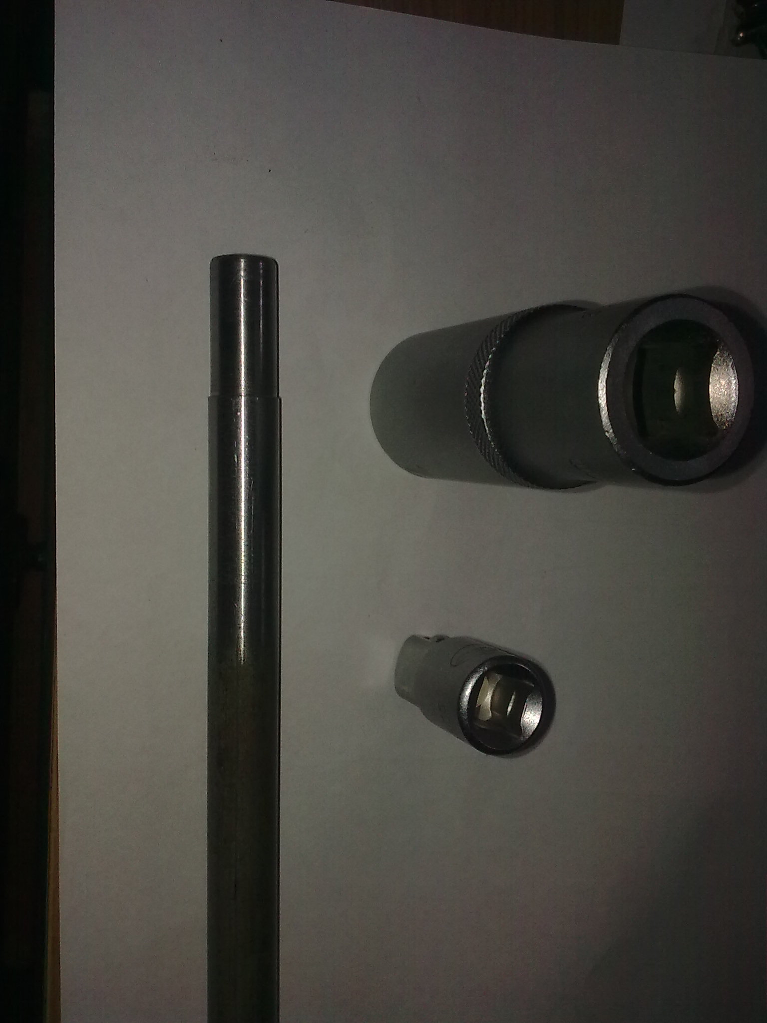 Как вот такой комплект. Головка на 22 , удлинённая, но на 1/2 квадрат. Переходник 1/2 на 3/8.