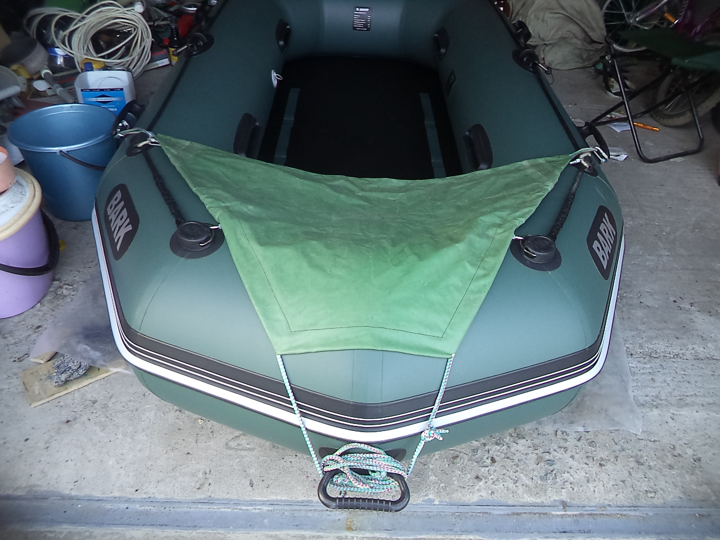 Чтобы разные мелочи "не летали по углам лодки" была сделана сумка в носовую часть лодки из старого АЗК халата.