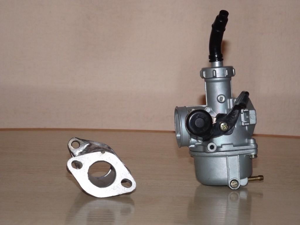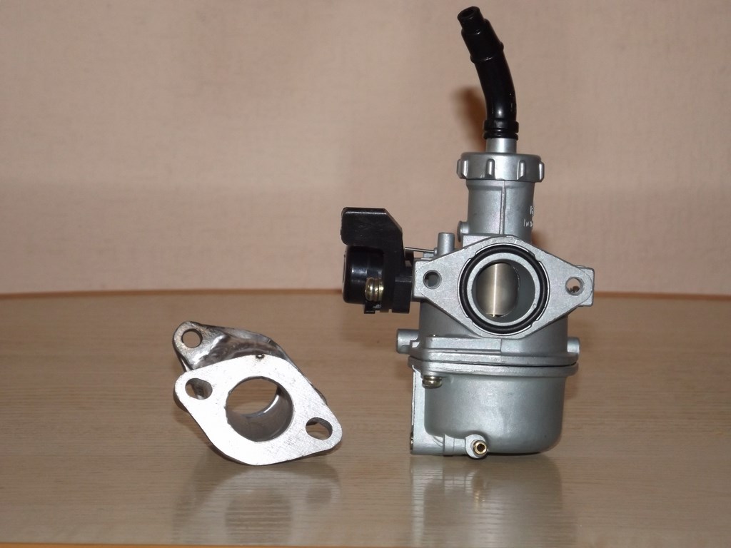 У меня почти такой же, я поставил нулевик от скутера, у него патрубок углом 90 градусов.