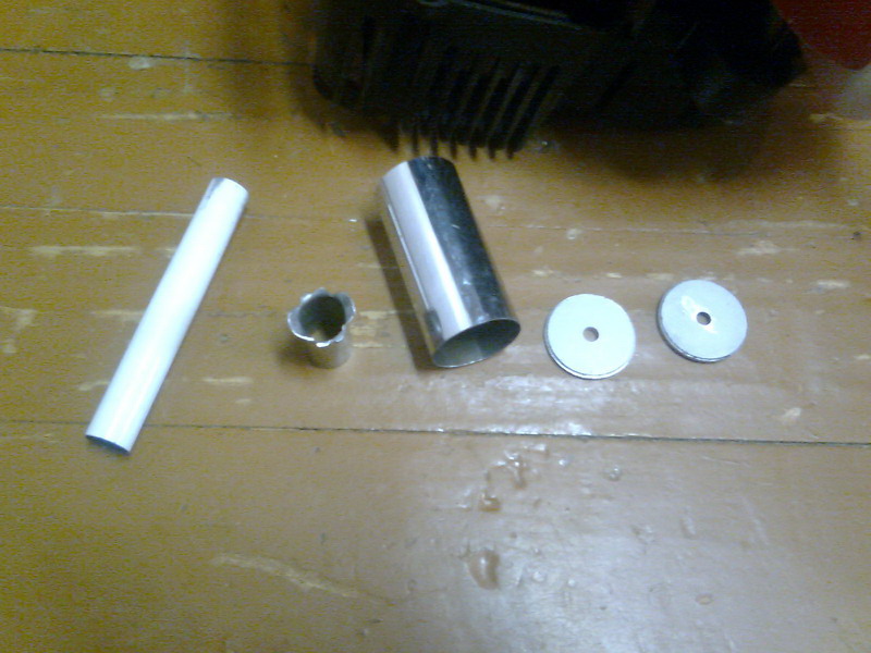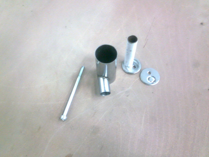 Изготовлены первые детальки и прошла первая примерка по месту, как видно по фоткам кусок трубы (тонкостенная хромированная труба вырезана из "швабры" для пылесоса) с боковым патрубком, в которую станет тонкостенная 16-ка, две крышки и шпилька. Во внутрь между ними плотно набью мочалки для мытья посуды из (нерж. проволоки) . Получится что-то вроде металлической ваты в середине, кроме того есть вариант поэксперементировать с диаметрами и расположением отверстий во внутренней трубке.. Думаю будет глушить (ХОТЬ слегка)...