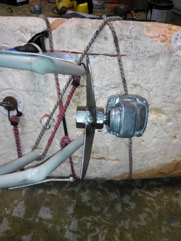 Вырезать из двойки-тройки основание для крепления мотора в его штатные отверстия, приварить выгнутые из подходящей 6-8 мм. проволоки "распорки-усы" крепления камеры, камеру пришнуровать либо закрепить ремешками чтобы можно было без проблем сдувать в транспортном положении. По кругу сверху пропустить шнур как на лодках, чтобы в случае чего можно было держать или буксировать устройство взявшись в любом месте рукой... Да и редуктор можно развернуть винтом "вперед", в данном случае это без разницы, особенно если твой винт будет прикрыт как я понял по предыдущим постам решеткой "безопасности".. На лодочных моторах делают винт "назад" для страховки и последующего "опрокидывания" агрегата при наездах на препятствия. Должно получиться более менее приемлемо по весу, трудоемкости изготовления и "эксплуатационным" характеристикам.