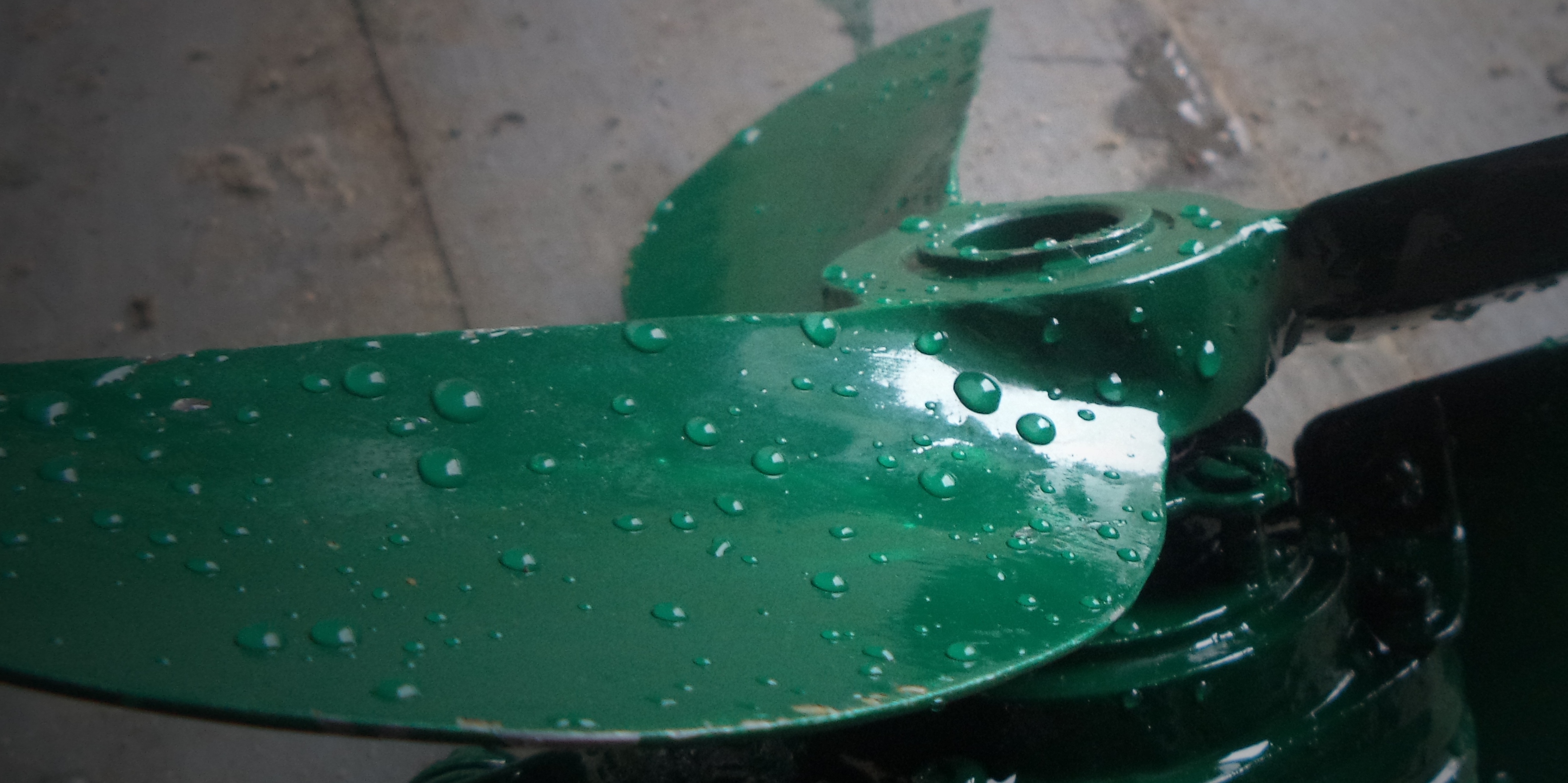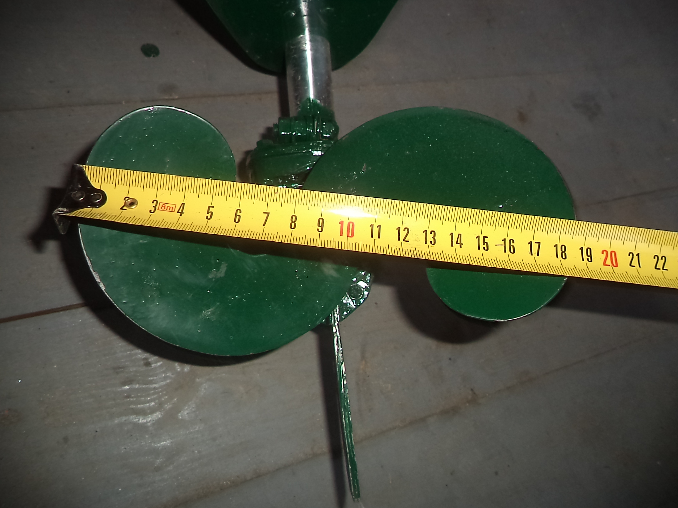 3. Самодельный винт "Баринова". На прошлых выходных испытал этот винт. К сожалению видео загрузить не получилось - "заглючил" телефон. Пожалуй, это самый удачный винт. Мотор таким винтом грузится по полной, да и скорость немного возросла - 9 км/ч. Правда максимальные обороты двигатель не набирает, примерно 70 % от максимальных. Не зря этот винт пользуется популярностью среди водномоторников, его ставят даже на "Хонду". Изготовить его не так уж и сложно. В качестве "донора" взял старый огнетушитель диаметром 120 мм и толщиной стенки 1,5 мм. Поначалу думал, что железо тонковато, оказалось что мои опасения напрасны - за счёт того, что профиль лопасти дугообразный, жёсткость лопасти более чем достаточна. Разрезаем так, чтобы ровная сторона лопасти была вдоль изгиба. Ступицу сделал из гайки и шайбы, оставшихся после разборки болгарки и сваренных между собой. Толщина ступицы получилась 1,6 см. С тыльной стороны лопасти немного добавил сварки, чтобы получить утолщение, а затем всё отшлифовал. Лопасть немного подогнул по принципу 2-го винта. В общем, "фишка" этого винта в том, что за счёт дугообразного изгиба лопасти винт выталкивает воду позади себя, а не разбрасывает по сторонам, соответственно и КПД увеличивается. Когда откроется сезон, постараюсь сделать видео. А пока ниже будут фото.