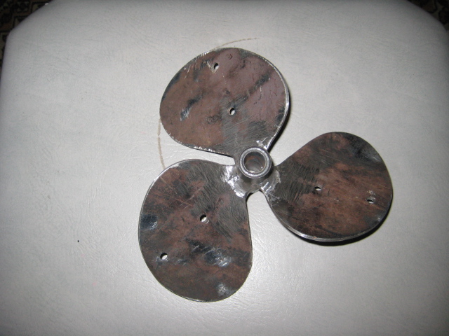 Всем привет.Так и знал изначально ,что изготовление винта дело тонкое.и может быть следующий и куплю.Но один сделаю точно ,если даже и не получится ,,покрашу лаком и на стену повешу". А вот и первый блин он на фото с лева :smu:sche_nie: Сделал для себя вывод ,что лопасти от двух лопастного на трех лопастной не идут да еще лопасть когда варил сместилась ,не заметил :de_vil: Взял другую картинку получился дубаль -2.
