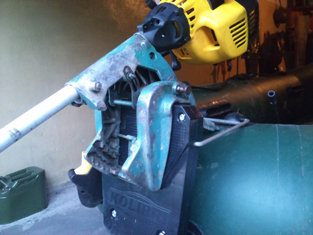 делал на коленке в гараже, электричества нет, напильник в помощь, на удивление получился сбалансированый давольно таки точно, не ожидал даже, практически не чувстуется биения и в плоскость попал. как будет ехать вода покажет. ручка из ручки телескопического подсадчика, люминевая, раздвижная, подошла как родная. нога из молярной штанги, стенка тонкая но металл прочный, редуктор от спарки 1/3, мотор 1.3 РЕСУРС , не сказать что очень громкий. киль для ровно плавания и пластину, на всяк случай поставил. Вообщем доволен.