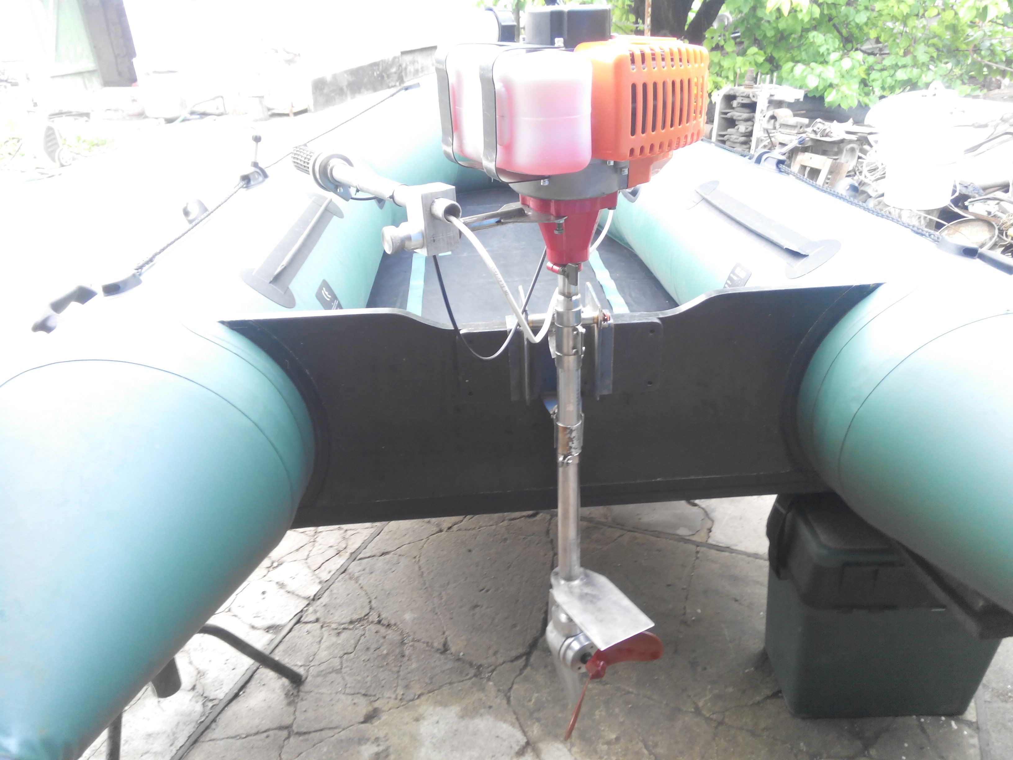 . Скорость по нафигатору 7км/ч. что один, что с женой, скорость почти одна и та же. Пробовал по камышу проползти, прошел, но намотал сразу бородень на винт, пришлось чистить. Винт конечно надо делать 100% другой, получился грузовой, для тролинга самае то. До 3/4 оборотов разгоняется, потом просто гудит, а едет так же, прироста тяги практически нет. И раз заглох, ели завелся, образовался вакуум в бочке. Расход, да его практически нет, за время катания и не заметил что ушло. Шум, не знаю как со стороны, сказали орет, но в лодке на ходу разговаривали и при том не сильно и орали.
