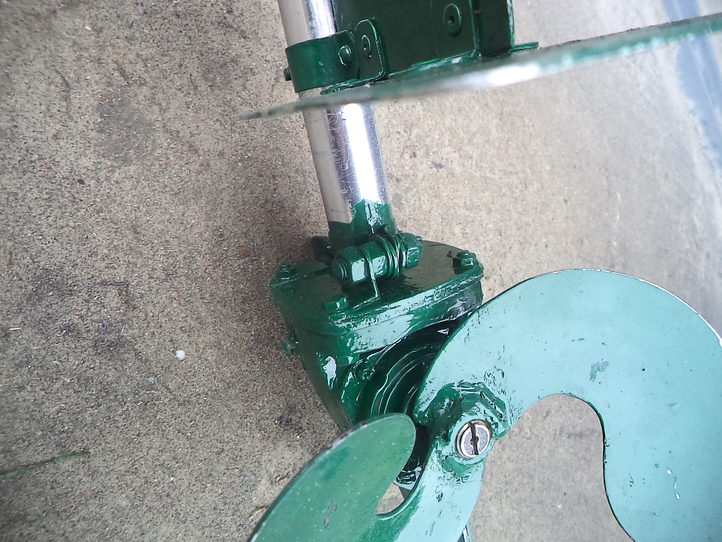 Поворотная часть струбцины от детского самоката на подшипниках. Во внутреннюю часть поворотного устройства подошла капроновая катушка от швейных ниток (не будет царапаться нога)