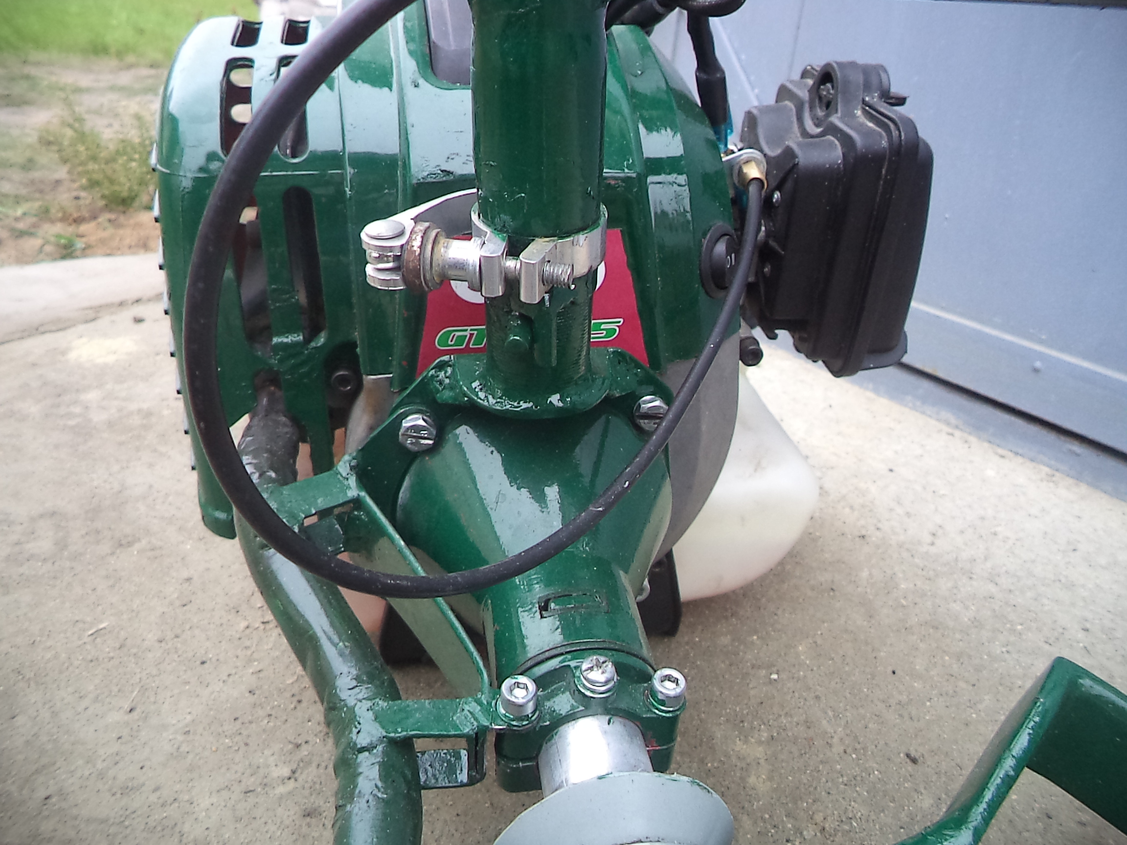 Я бы на твоем месте трос газа укоротил. Для нормального сброса газа пришлось поставить доп пружину на карб. Следствие - тугой ход троса и за сезон вышла из строя рукоятка газа (велосипедная, так же).