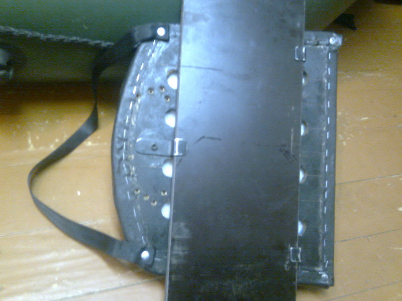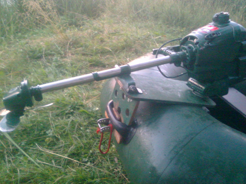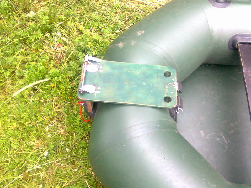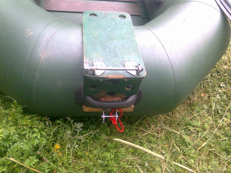 В своё время сам искал в сети как изготовить транец под мотор, ничего подходящего лично мне так и не нашел. Купить готовый с наклеиваемыми "фишками" креплений было негде, в конце концов придумал своё решение. Пришлось правда приклеить лишнюю уключину. Лодка моя ПВХ, не всякий клей подходит, клеил на "Момент-гель" для ПВХ, нормально получилось. Сам транец из 10-ки фанеры и нескольких усиленных перемычками обрезков уголка. Крепится он гладкой шпилькой к уключине и притягивается болтом к ручке. Болт выполнен с креплением для шнурочка (чтобы не терялся). Сделано всё так, что при полной накачке лодки борт внатяг поджимает лежащий на нём транец снизу. Это при использовании бензомотора в 1-2лс. обеспечивает достаточную жесткость и отсутствие вибрации всей конструкции. Фанеру перед покраской пропитывал воском (или парафином.. свечкой вобщем..) прогревая строительным феном. После подобной пропитки когда воск практически кипит и глубоко проникает в поры дерева фанера никогда не разбухнет от воды. После пропитки она также легче обрабатывается по краям от заноз и заусенцев. Красил из баллончика, чисто для "формы", т.к. краска естессно особо на воске держатся не будет..