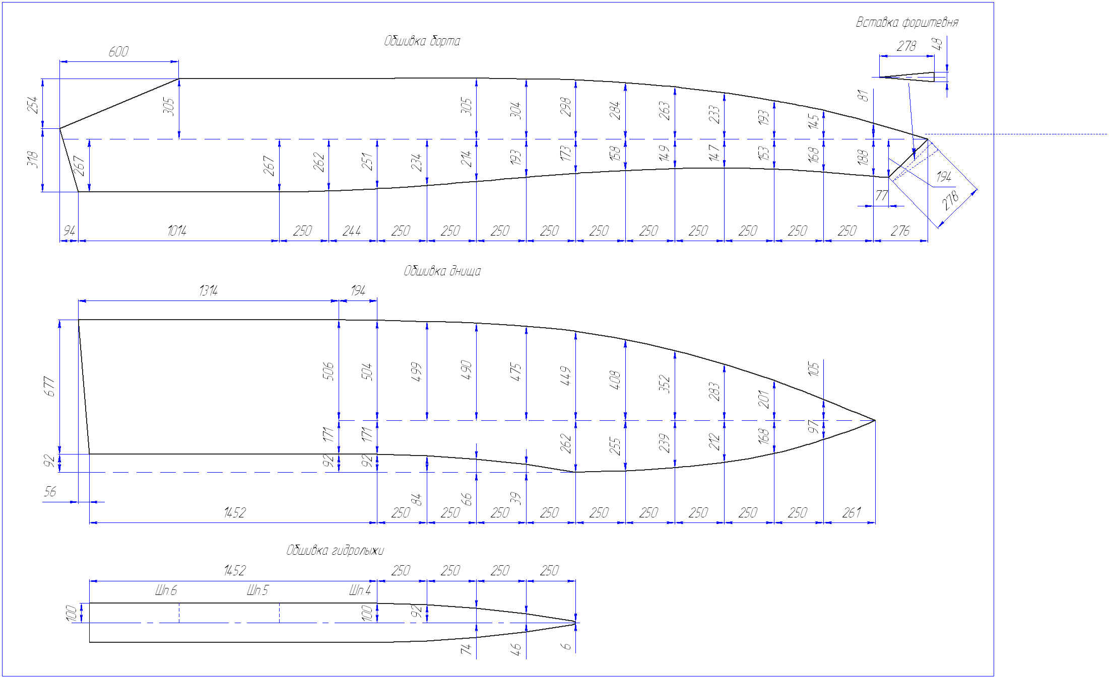 У Димона интересный вариант, обзывается гидролыжей. На небольших скоростях при волне работают наклонные участки днища, при выходе на чистое глиссирование днище скользит на плоском участке.