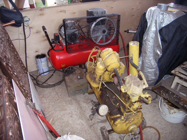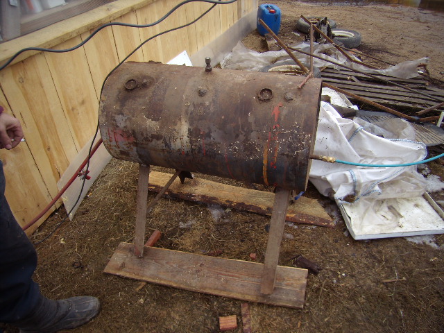 вопреки сомнениям ,несмотря на слизкую погоду работать получается вполне нормально. применил впервые маску с принудительной подачей воздуха- весчь я вам скажу классная, единственно что видно очень плохо через нее - освещение мало помогает и приходится в одной руке держать лампу переноску а другой работать. еще пришлось для подачи воздуха использовать отдельный компрессор, и через фильтр от противогаза воздух от него подается в маску ( фильтра оказались с корпусом из алюминия и соски пришлось вставлять на заглушках резиновых а сперва планировал их впаять) раньше работал с респираторами или потивогазами- ерунда все это полная по сравнению с внешним воздухом. купленного компрессора на 690 литров в минуту вполне для меня хватает но все равно получается весьма не быстро- низ кабины с одной стороны за полтора дня а на всю уйдет как не крути неделя времени- трудоемкость огромная. одно радует - не приходится пыль глотать. будка моя тоже со своими функциями вполне справляется- 90 % песка удается вернуть в оборот. на фото бочка которую использую как влагоотделитель.