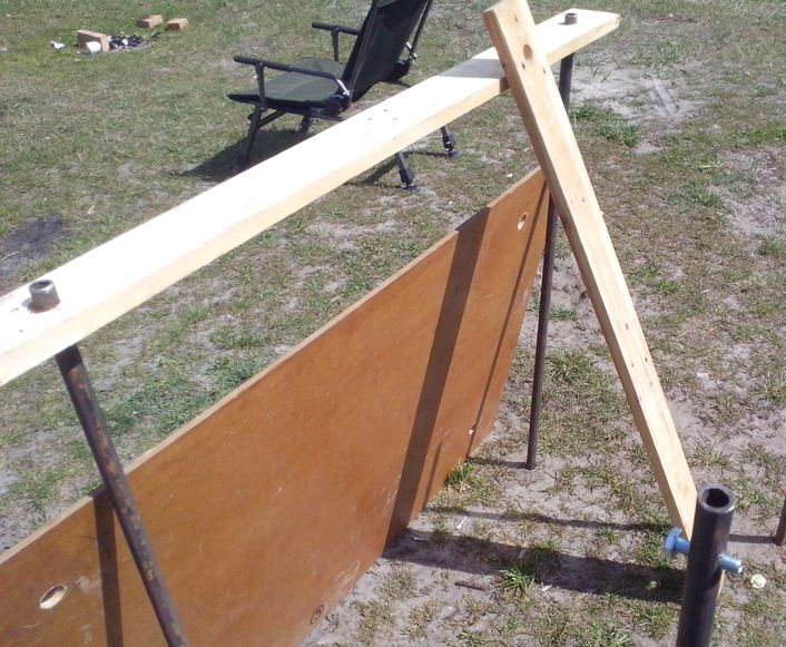 для установки сначала укладываю на земле столешницы одна к одной... в отверстия вбиваю ножки... затем столешницы поднимаю и убираю в сторону... вставляю болты в отверстия трубок... кладу каркас из 2-х досок на стойки-ножки (вдоль стола, для придания прочности двп)... и сверху кладу столешницы...