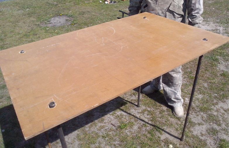 ... задумался сделать из плит двп... есть такие плиты на складах, которые плиткой торгуют... покрыть лаком, сделать отверстия для ножек и сами ножки из арматуры ...