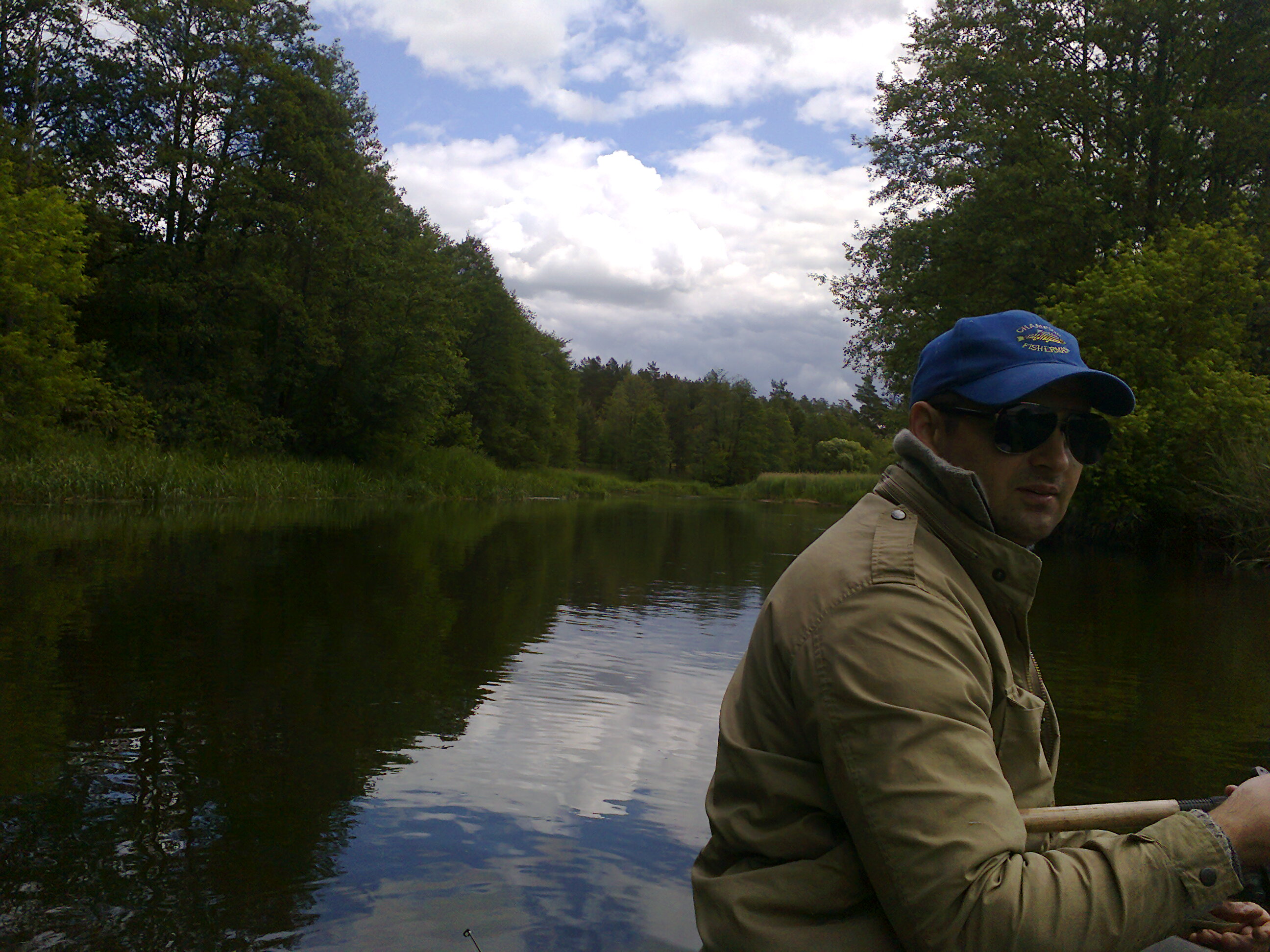 От моста М1 до леса участок реки однообразный. Берега, помимо американского клена, поросли лозой. На левом берегу есть очень живописное гнездо аиста. На одной из обраток была поклевка килошницы, которая не особенно упиралась и быстро была подтянута к лодке, а подсак к ее приему не был готов. Нами было нарушено основное правило при ловле щуки на джиг – не давать слабину, в результате, не дождавшись подсака, она отцепилась возле лодки и ушла восвояси.