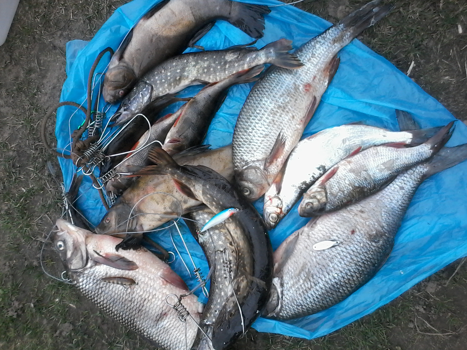 два дня на припяти . 2 судака 2 щуки 4 окуня :-): .одна поклевка сома и 20 минут катания на нем порвал плетенку :spin: судаки были отпущены :ni_zia:
