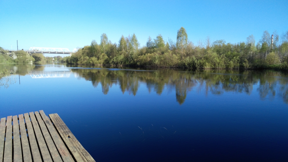 Утро было прекрасным: чистое небо, предрасположенность к теплому дню (напомню, что 10 мая выпал снег) и полный штиль... Несмотря на все это было прохладно и я далеко не прогадал в том, что одел Горку с флисом и взял вязанную шапочку. В самом начале, еще не начав свой маршрут, я уже получил дозу огорчения... Местная школа по байдарочному спорту, расположенная прямо на берегу реки и напротив моего дома, каким-то чудным образом получила разрешение на расширение территории, ввиду чего ими были выставлены столбы, полностью перегораживающие ЕДИНСТВЕННЫЙ спуск и подъезд к воде на несколько километров!!! И это несмотря на то, что на военных картах это место обозначено как возможный брод и место установки понтонов, а также местные РОЧСы приезжали за забором воды... Забегая немного вперед скажу, начало выясняться, что это вроде как уже и не к школе относится, а к некоему ИПэшнику по сдаче внаем водных скутеров, лодок и т.д. Большое ему за это спасибо, с коляской теперь к реке без преувеличений не спуститься, будет куча машин и носящиеся водные мотоциклисты в месте где купается весь город... С реки это выглядит все так!!!