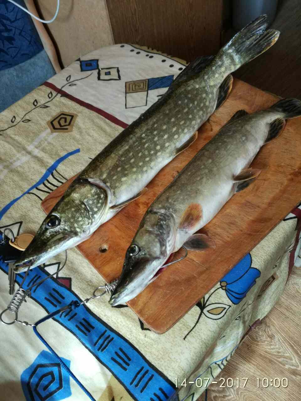 И так, это были первые числа июля, я приехав на берег, собрав свой ультрик, отправился гулять по берегу. Примечательно то, что щука отзывалась практически на каждом забросе, но мы же русские "пока не сломаем - инструкцию не читаем", так и я, всё откладывал, откладывал покупку подсака, в результате 6 банальных сходов у самого берега, 2 щуки на берегу. Заночевав на берегу, сидя в палатке, я уже заказывал с телефона подсак на сайте))) Следующий выезд был 14 июля, ну как выезд, ехал с командировки домой, не поленился крутануть несколько десятков километров и оказался вновь на реке. Тут я уже по полной выкладке и с подсаком :nahlist: , ээээх, понеслась...места новые, приехал куда пальцем тыкнул, пошёл узнавать и гулять по берегу... Заброс - удар..мимо, заброс - подмотка, когда уже блесна была возле спиннинга, увидел пасть, опять мимо(((( Смена места, заброс-удар, есть!!! Не спеша, даю рыбке свободу, фрикциончик отрабатывает, я не форсирую, наслаждаюсь этой игрой, и завод в подсак, есть красавица! Щучка на берегу. Уже на берегу, я понял что не трофейный размер, да и подрасти ей не мешает, сделав небольшую фотосессию, отпустил зубастика подрастать, чай не голодные мы до рыбы))) А сам пошёл кидать дальше... Итогом двухчасовой прогулки по берегу: два отпущенца, две поехали со мной домой. Минус три вертушки :cry_ing: :cry_ing: :cry_ing: (поеду опять в Польшу пополнять запасы) :ti_pa: :ti_pa: И с темнотой выдвинулся на Минск.