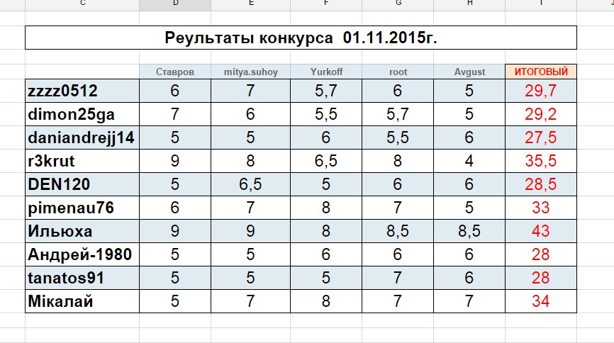 Подвдение итогов завтра, после оценки всеми членами жюри. :)