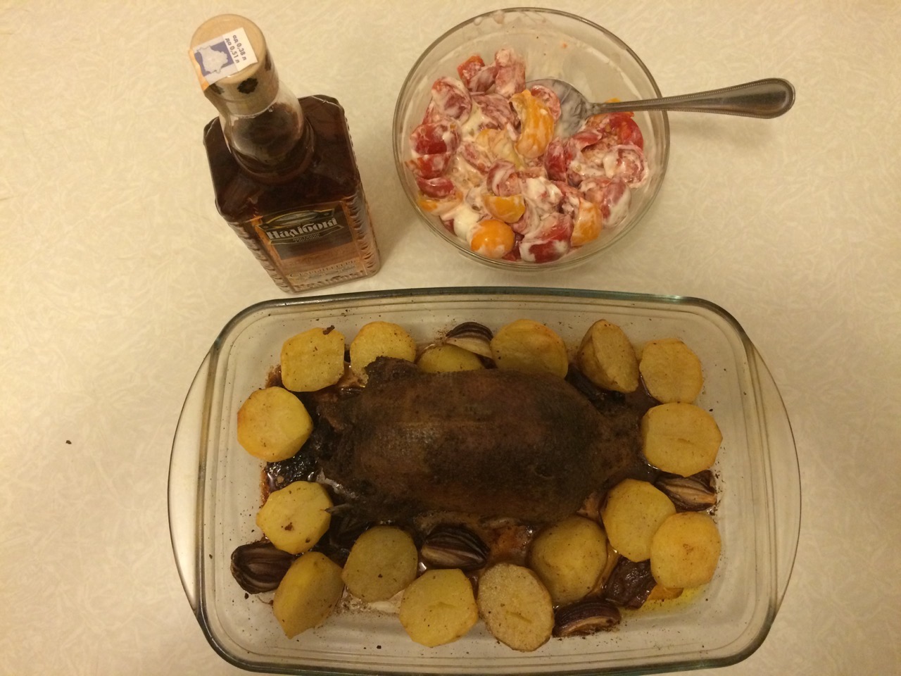 Бульба жарана, бульба варана! Дольки по-деревенски это хорошо. По мясу вообще не понял... Что за мясо? Чье? А у валюша там ножка видна на тарелке или мне показалось?