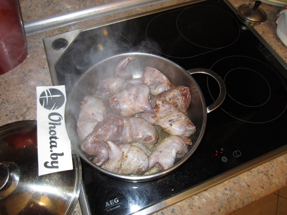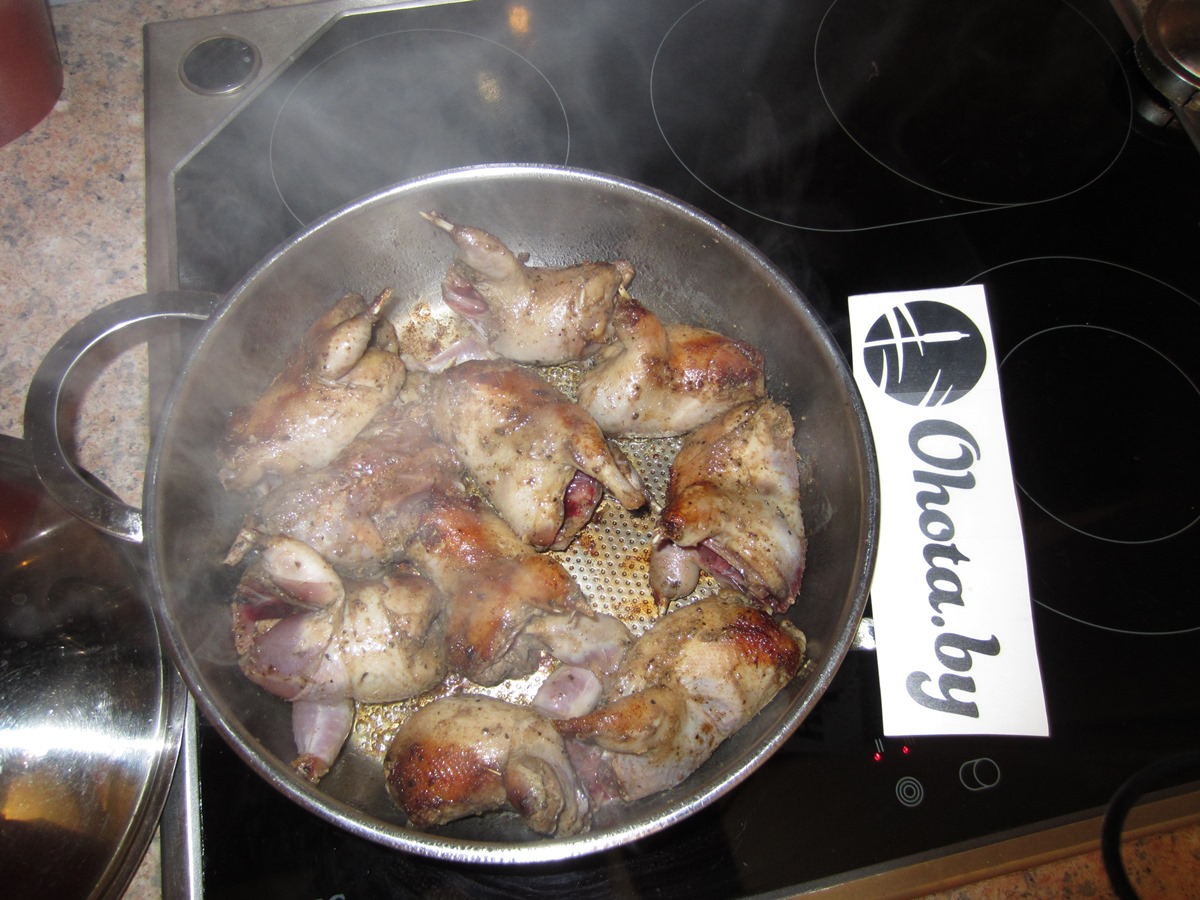 Уменьшаем огонь и тушим перепелов, мясо жестковатое, тушить надо долго.