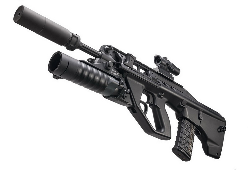 В общем начал делать под Браунинг.Делалось по просьбе гражданина для начинающего стрелка-его сына.Парнишка хотел что-то похожее на подлинную винтовку,типа как я «Винторез» из «Ёжика» делал.Почему винтовку?Дело в том,что Браунинг этот весом больше моего Хатсана даже-вес более 1800 грамм(мой 1700).Конечно для паренька это было много.О точной стрельбе даже с двух рук говорить было сложно.Решено было сделать ему что-то с надёжным хватом обеими руками.Полистал справочник стрелкового оружия…И выбрал именно AUG.Конкретнее-штурмовую винтовку австралийской армии THALES F-90.Делают её по лицензии Steyer AUG(Австрия).Вот некоторая справка: