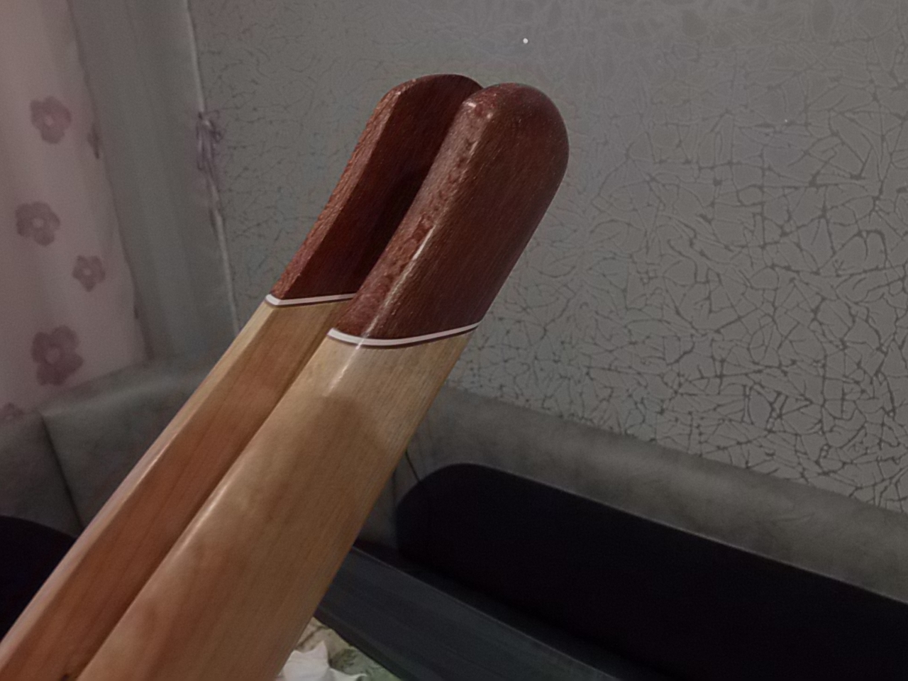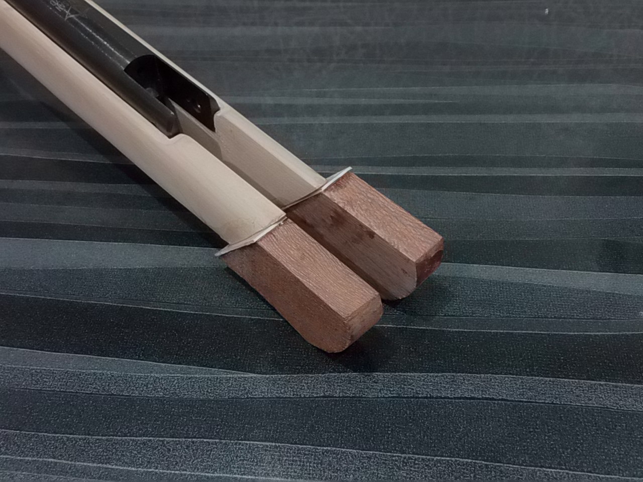 Следующим элементом декора были носики в цевье. Из той же древесины конечно. Кстати есть картинка для понимания в каком виде я его «злодейски» добываю. Приходит оно порой ко мне на производство в виде поддонов со стеклопрутком из Индии. Вот и курочим эти поддоны. Тут я на работе пока время было и занялся заготовками под носики. Первый снимок-необработанная палка от поддона,второй-полностью готовая заготовка.Она уже не то что зачищена-отполирована и удалён в 3 подхода поднимающийся после увлажнения заготовки ворс. Ну разве не красиво?