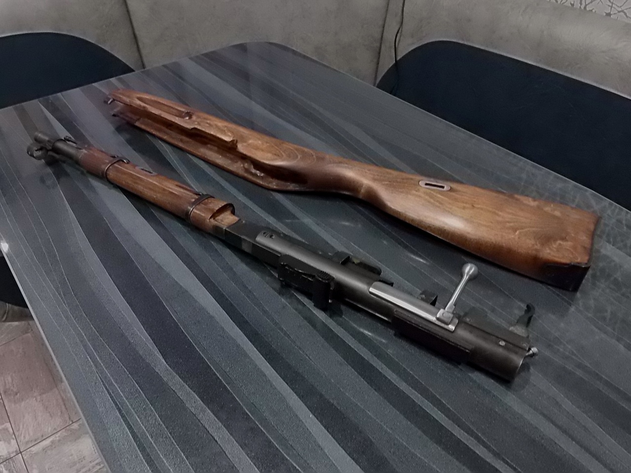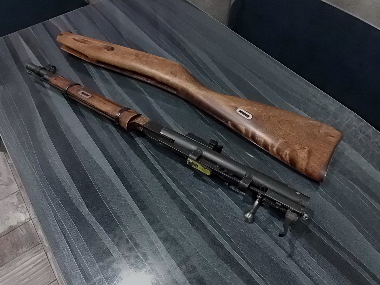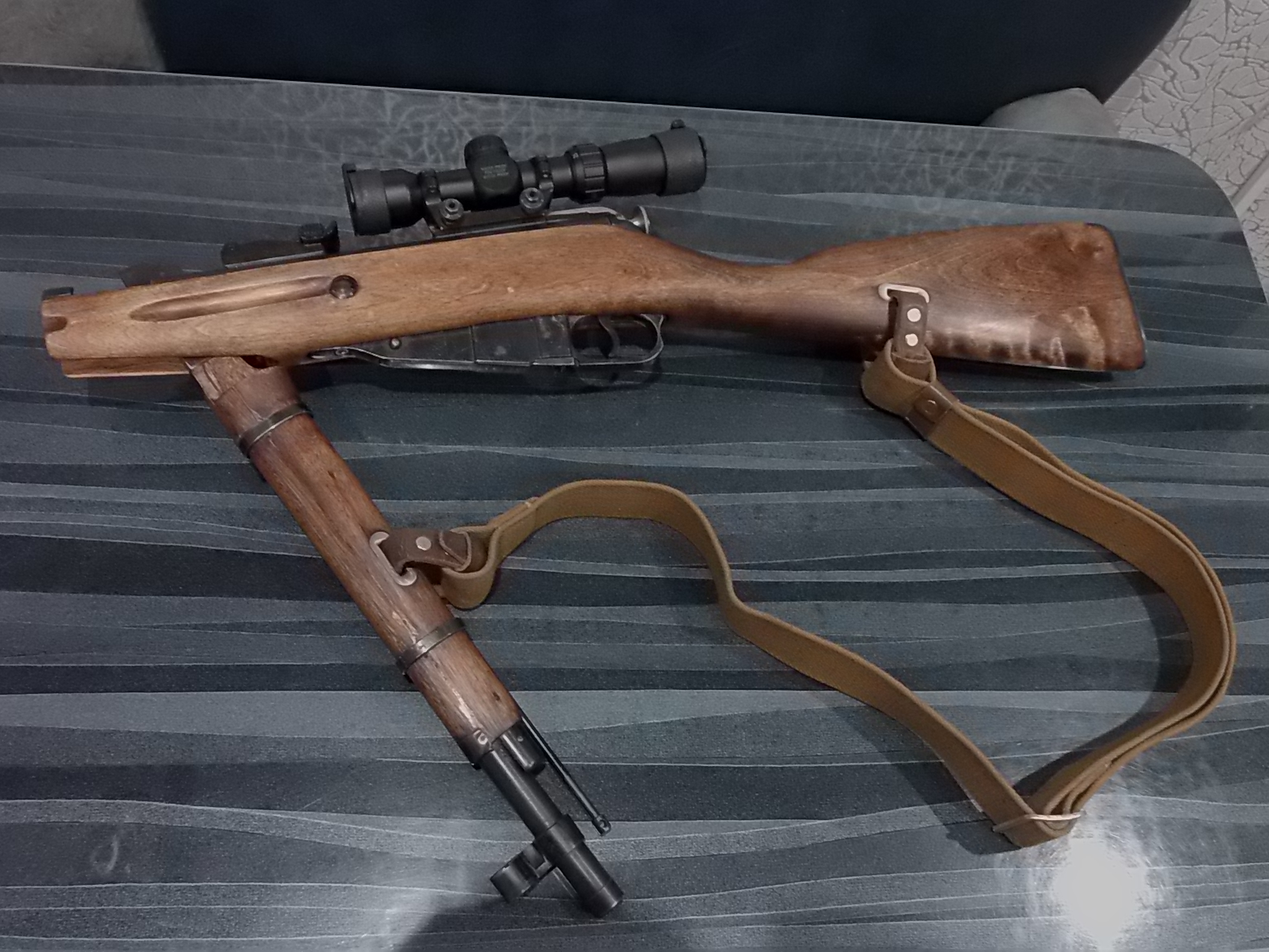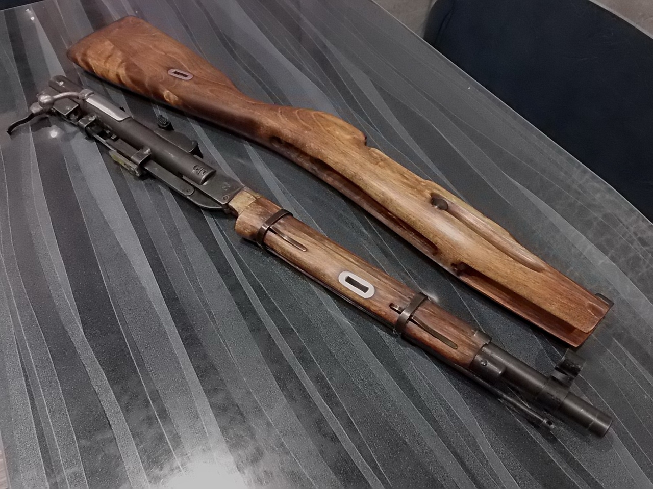 Для работы решил приобрести оригинальный комплект к карабину Мосина обр.1944года. В комплекте были: ложа оригинальная, ствольная накладка, нагель,затыльник,шомпол,ремень в полной комплектации, пружины под ложевые кольца. Антабки в ложу были уже врезаны.Приятно было что на затыльнике,ремне,ложе присутствовали клейма. Это добавляло харизмы и историчности.