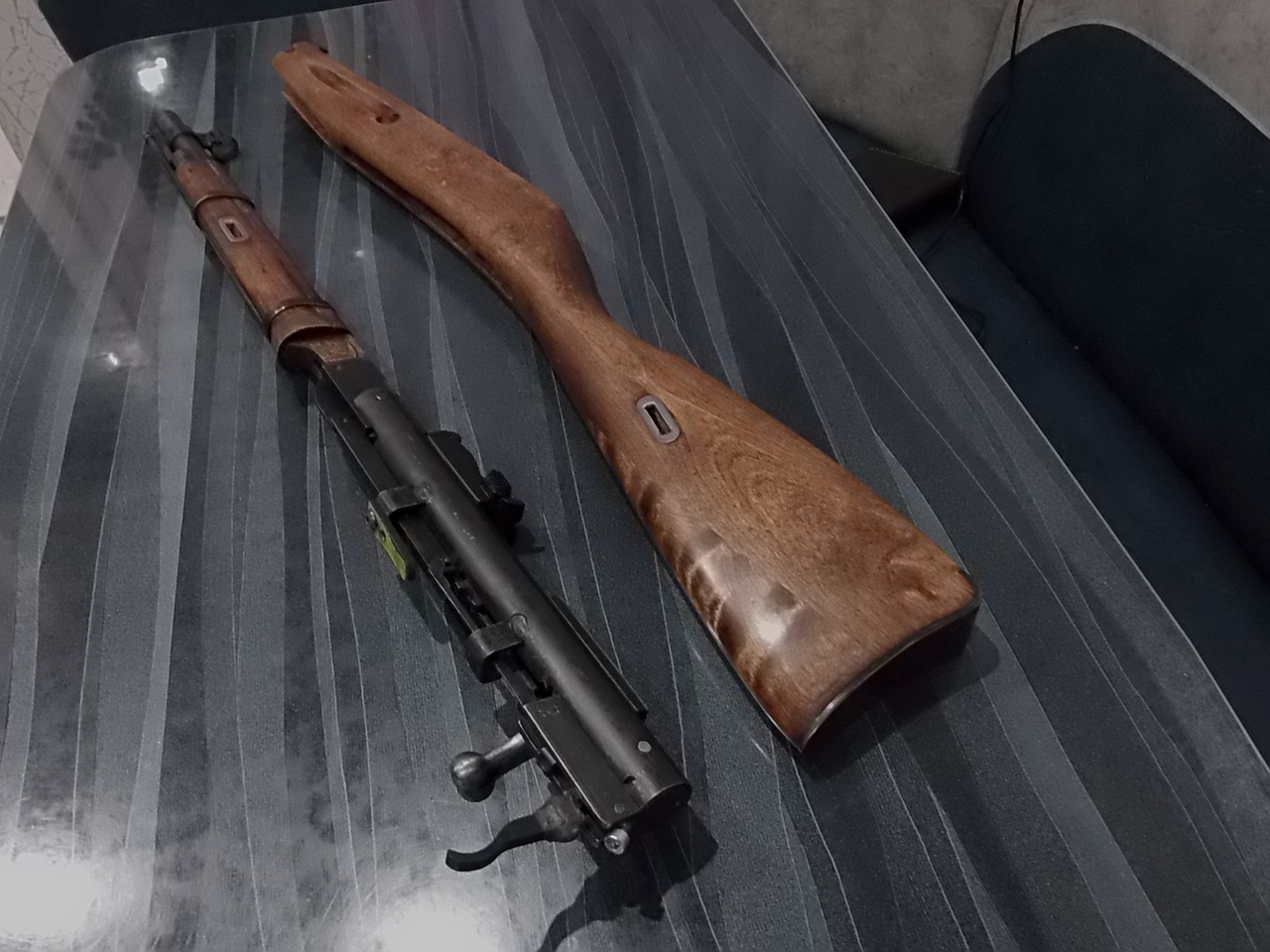 С огромным удовлетворением сообщаю, что закончил очередную свою поделку, спешу ей с вами поделиться. Как поняли вы из заголовка-речь пойдёт о стилизации пневматической винтовки ИЖ-38 в карабин Мосина. Давно было желание выполнить эту задумку и наконец пришло время. Безусловно к этому решению подстёгивали работы признанных мастеров стилизации-особую роль в этом конечно сыграл талант и усердие уважаемого Евгения Ивановича Костицына (на айргане Veber,на Ганзе МК1). Не отстали и наши земляки-Денис(Шеффилд) и Сергей(Акбарс). Свои силы в стилизации я пробовал в работе «СВТ-40 на базе Мурки»,ну и вот наконец собрался с мыслями и поборов сомнения,взялся и я за «мосинку»….