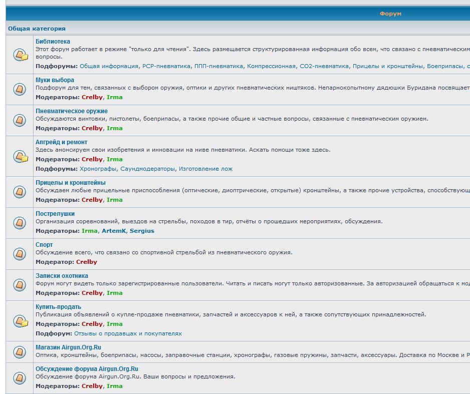 Ну по идее надо бы для начала отделить темы где например обсуждение пневматического оружия происходит, только назвать надо этот раздел как то по другому чтобы слово "оружие" не присутствовало - иначе это подразумевает более 7Дж. - "пневматические винтовки" и "пневматические пистолеты может" ? а в них поперетаскиваем всё что касается мат. части ?