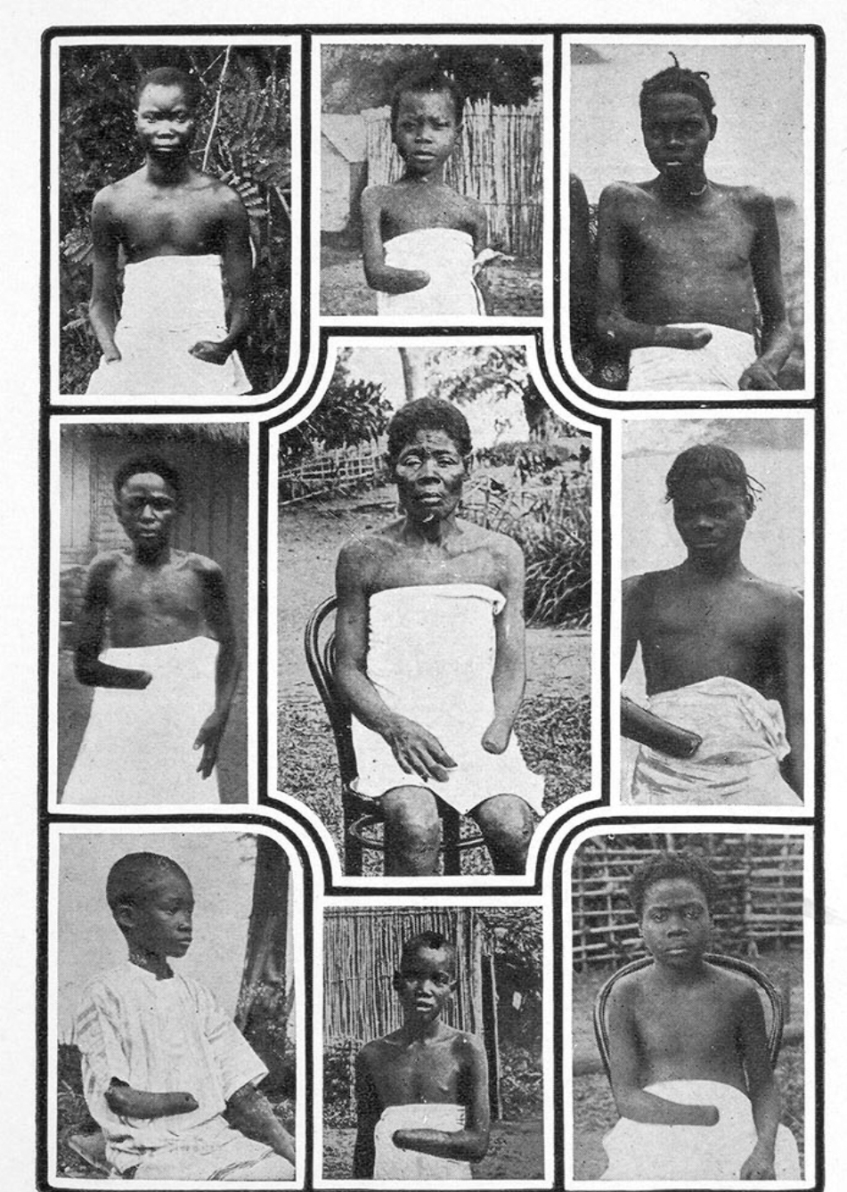 Пару фоточек: Верные поданные короля Леопольда II, устав от суетных дел позировали с местными жителями. Казалось бы, на кадрах нет ничего необычного - европейцы несут привычное им "бремя белых", путём отрубания рук маленьким детям, чьи родители не смогли выполнить норму по сбору каучука. Вот только на фотографиях не середина XIX века, а первое десятилетие века XX.