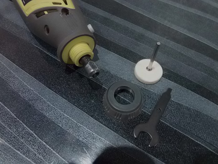 Несколько насадок-под наждачные кружки,баночка отрезных/шлифовальных кружков,войлочные кружки+вал-саморез под них,три абразивных кружка+брусочек абразивный.