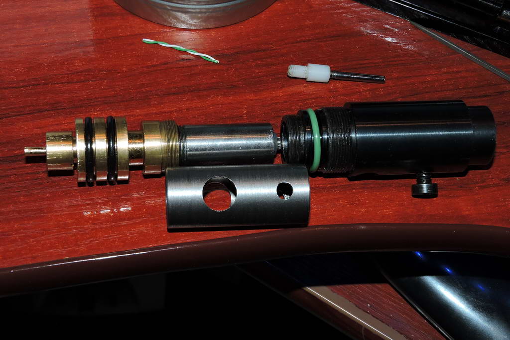 Нарезы вроде как нарезы, скорость 300 при 16 джоулях это надо хлебом стрелять, а не свинцом. Вот для сравнения сверху дудка от Р-10, снизу от Хорнет, перепуски и проточки под болтики совпадают, хоть разница между ними 20 лет. Поставил в Р-10 длинную дудку - завтра посмотрим какие кучи были в 86 году