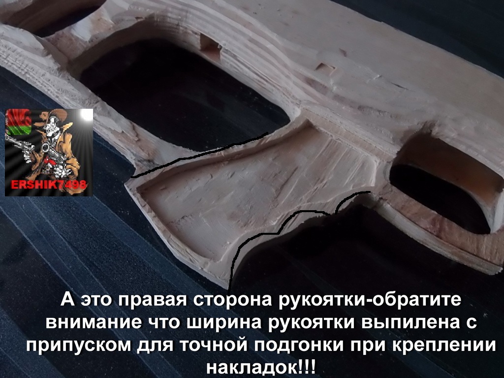 Размеры пистолетной рукоятки,там где будут выемки под пальцы также нарисуйте с запасом,лучше будет её подогнать после установки накладок.