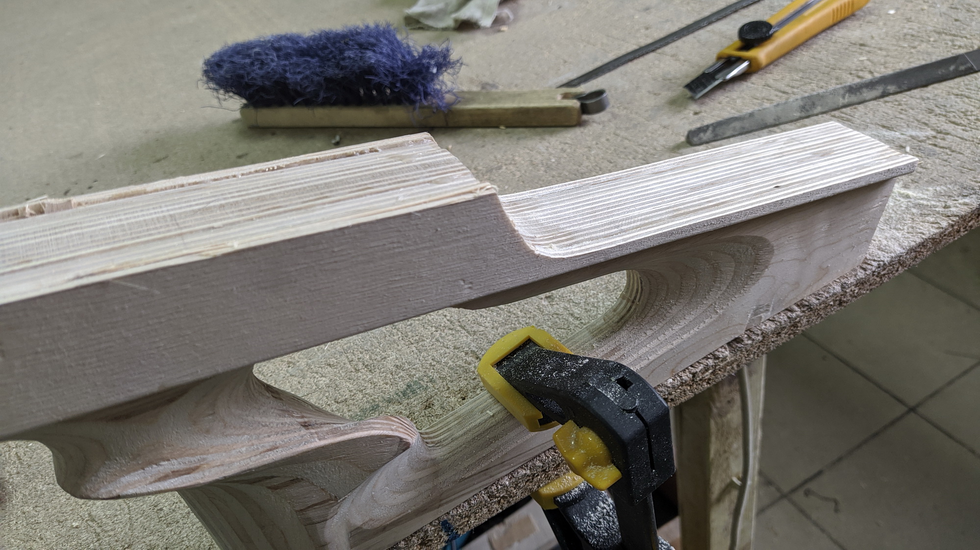 Сегодня присадил гребень и нижнюю часть приклада, покрыл морилкой, осталось пропитать.