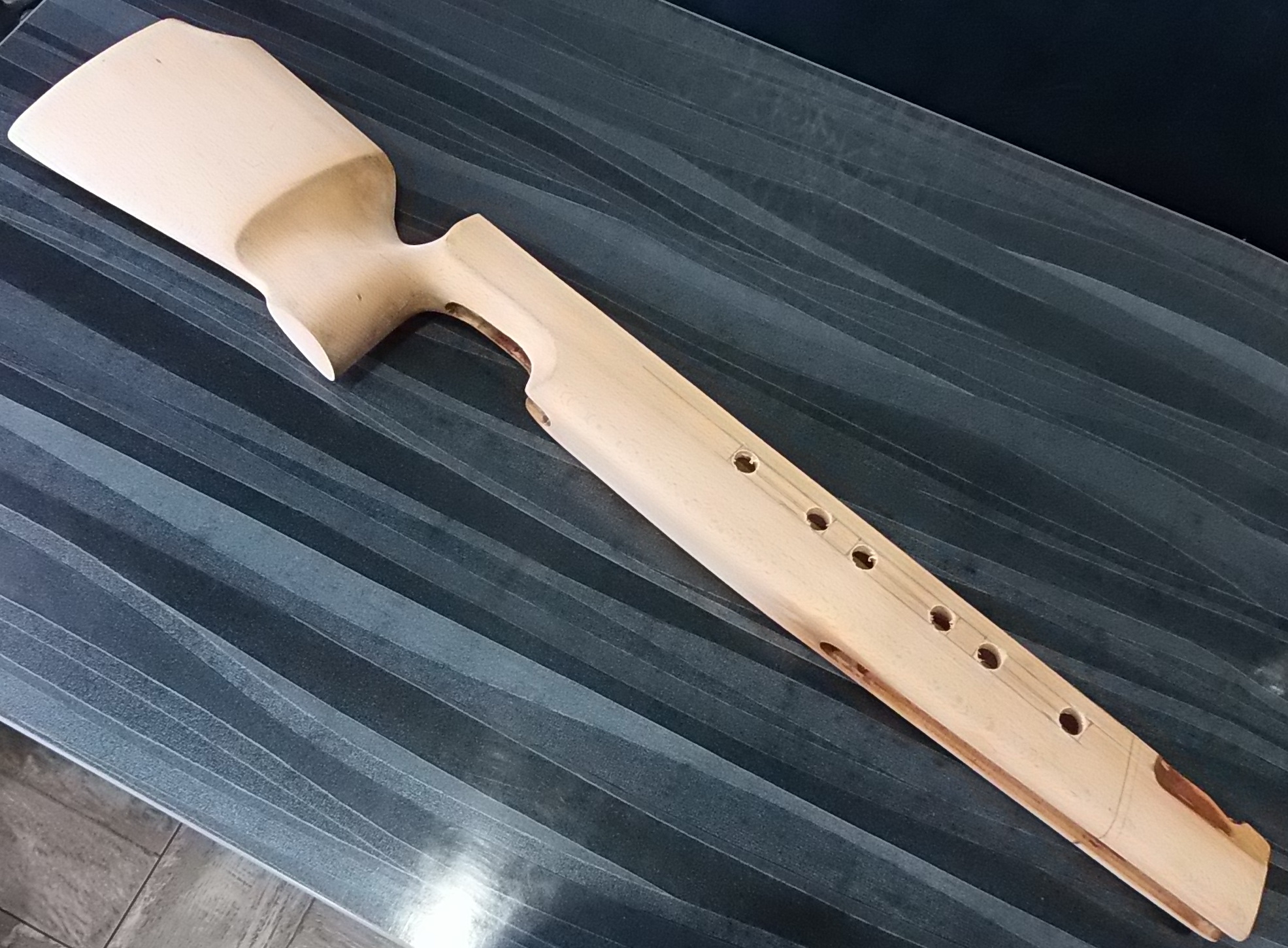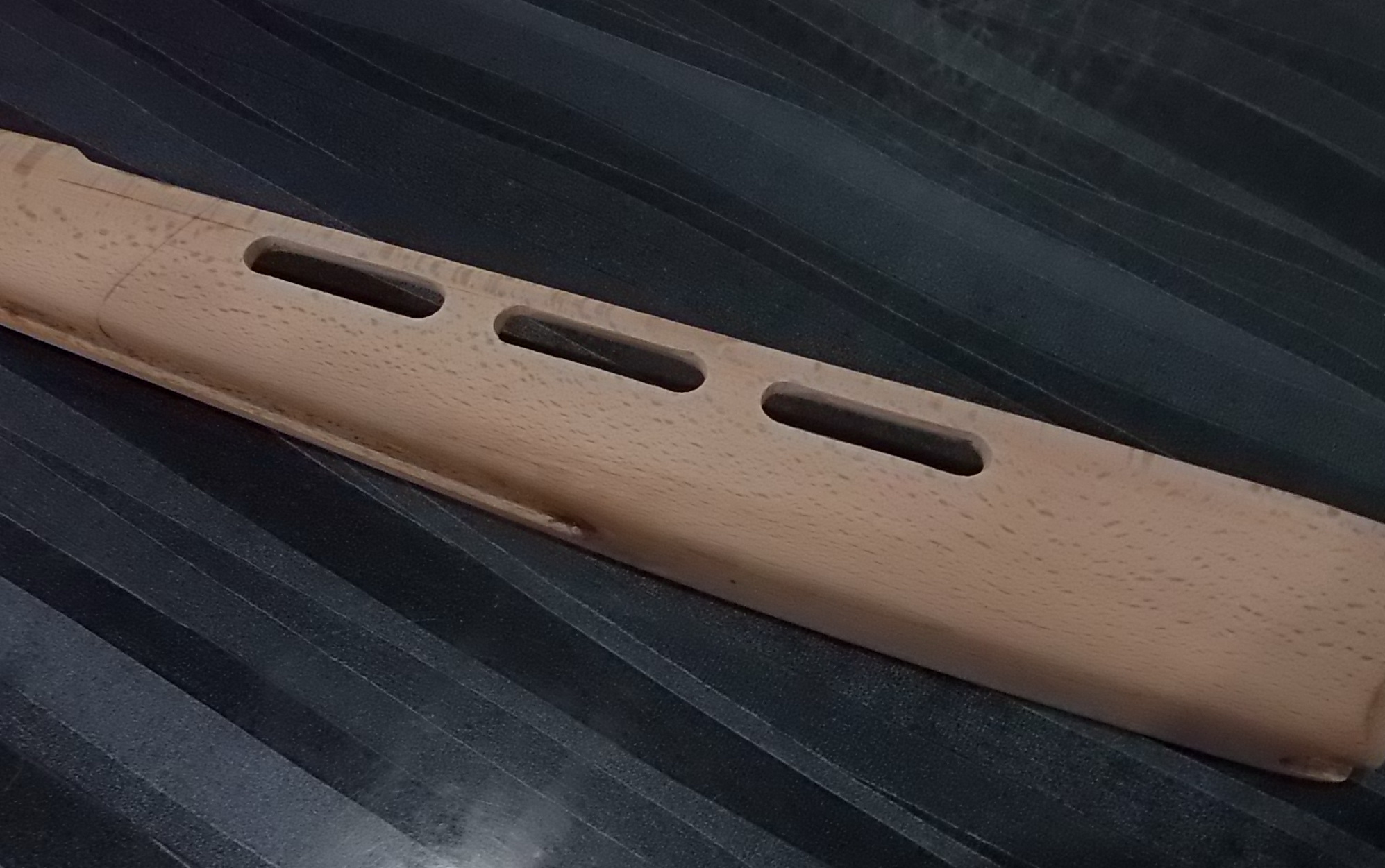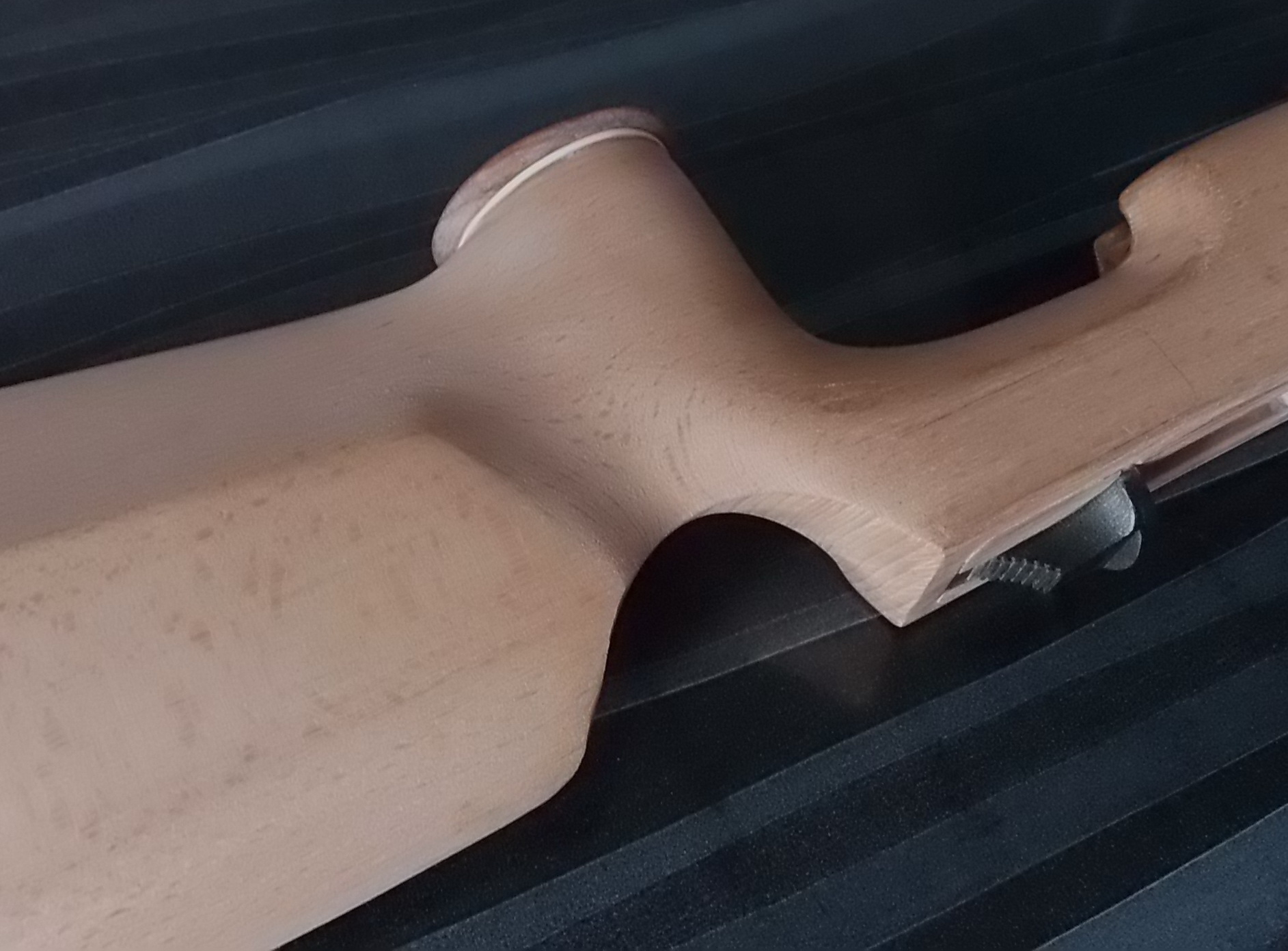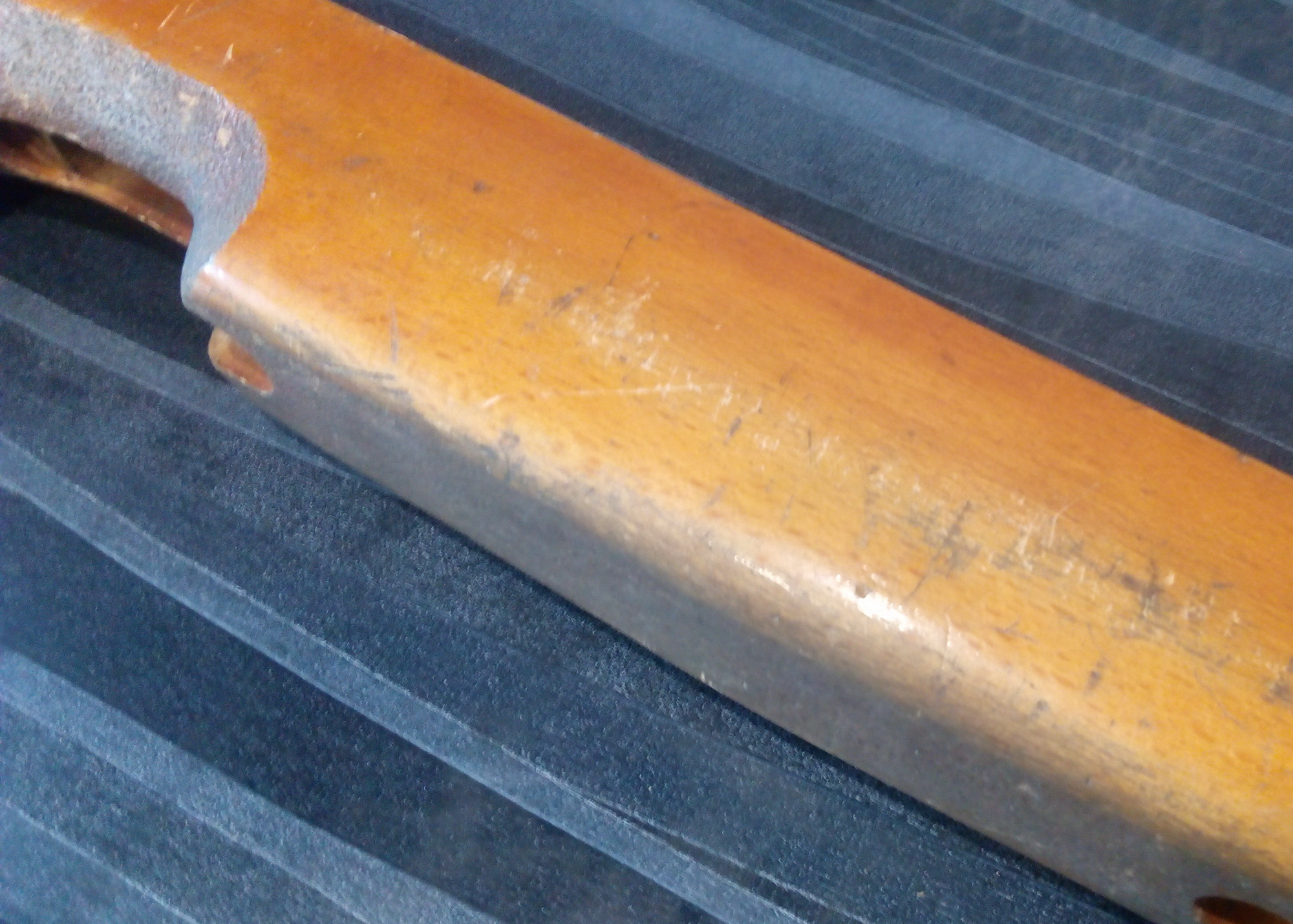 Ну а после взяв в руки наждач.бумагу Р-80 и Р-100, основательно отшлифовал буковую ложу начисто. От старого покрытия и следа не осталось, а дерево подарило довольно интересный рисунок текстур: