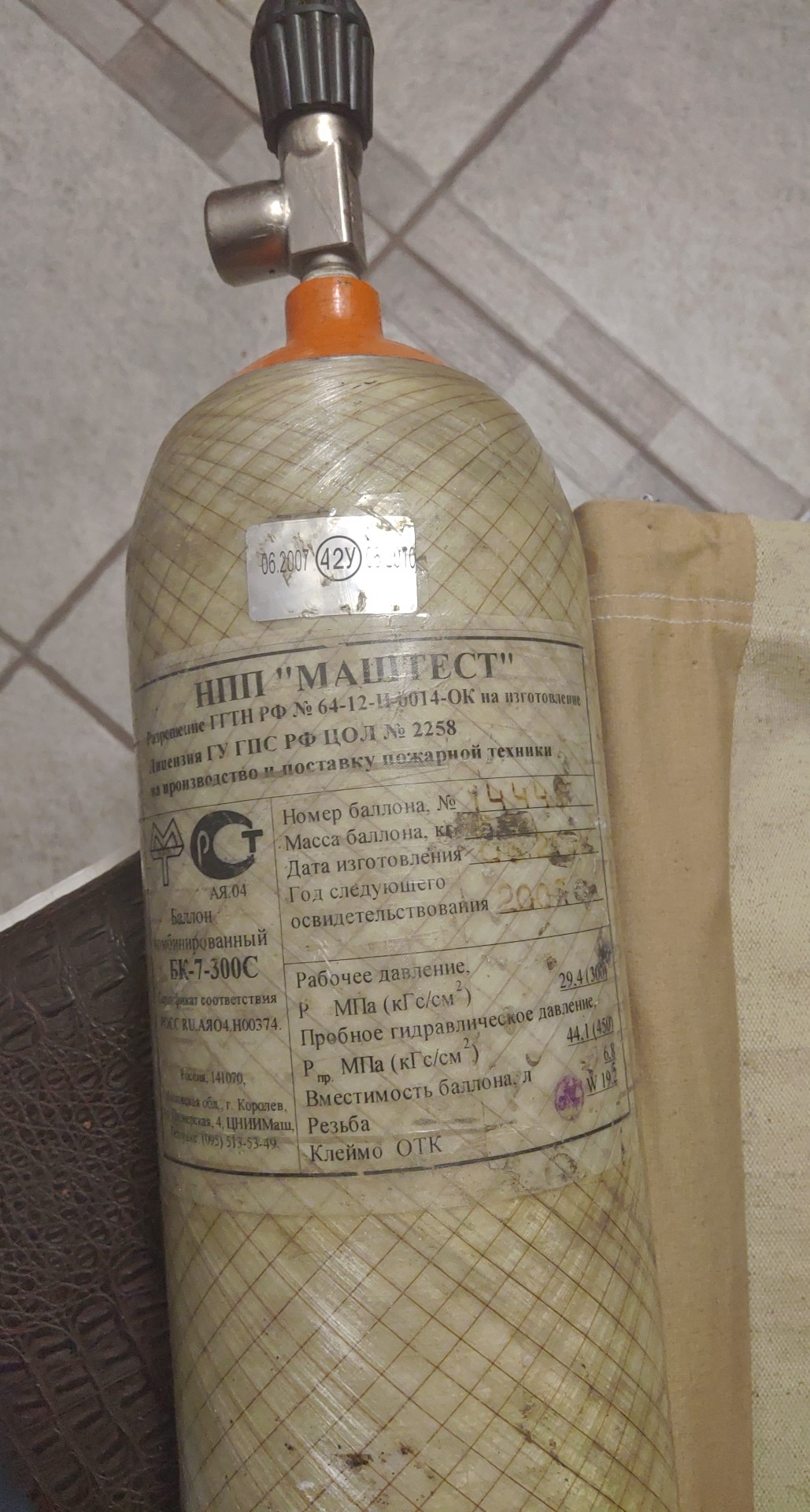 Баллон металлокомпозитный ВД Маштест БК-7-300С 6,8 л. вентиль без манометра. Достался мне в таком виде, сам не заправлял, баллон под давлением.
