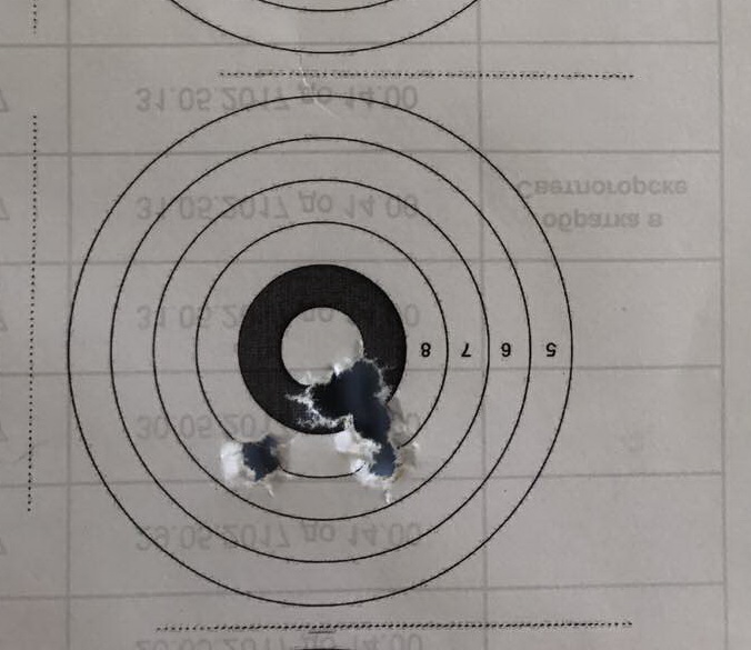 Для любителей "кучек" есть свежее фото стрельбы на 50 метров в одну из 12 мишеней,распечатанных на листе А4(все 12 на одном листе).Стрельба с упора-5 выстрелов.Один отрыв-думаю сам виноват: