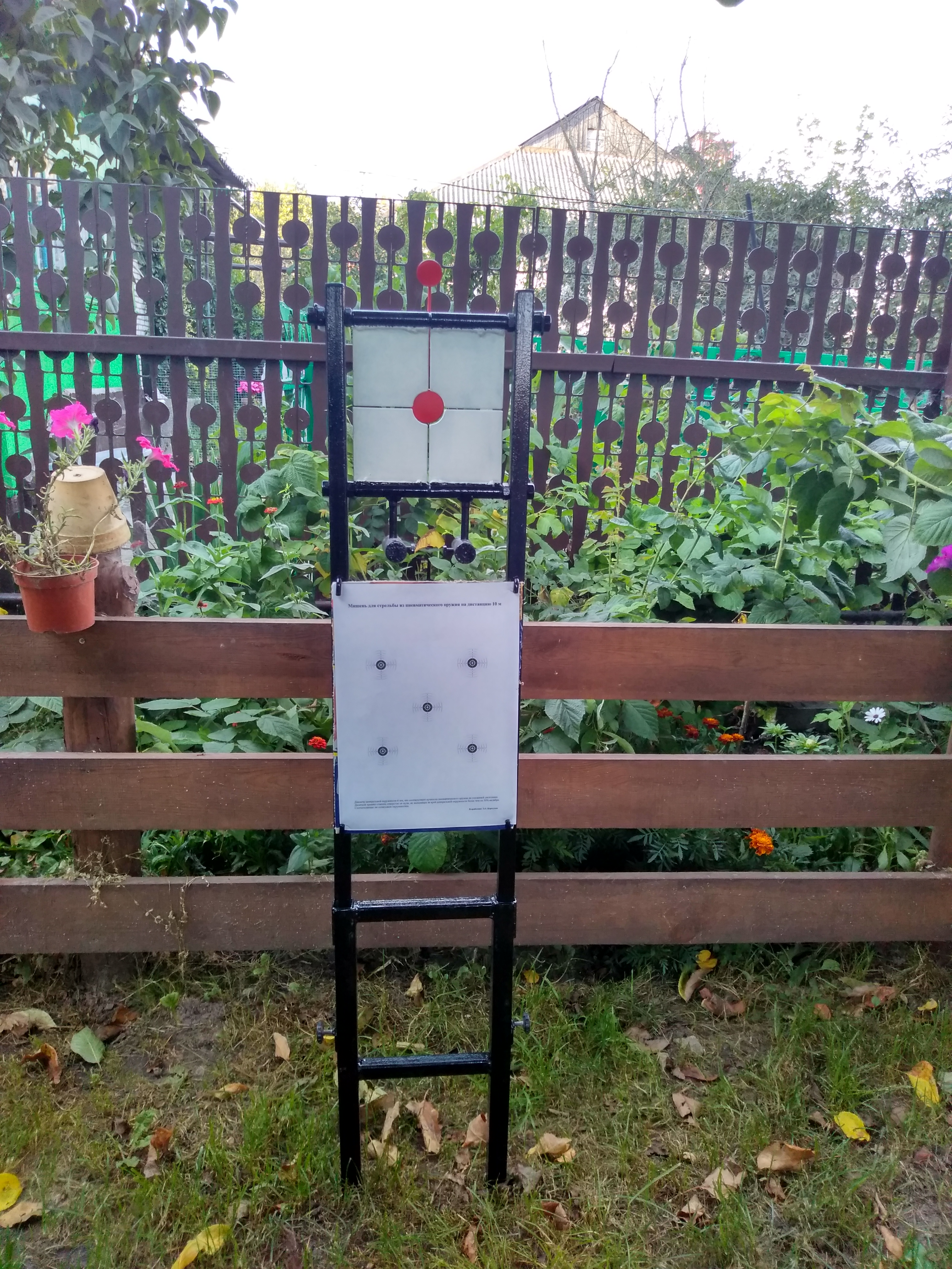Пользуюсь такой мишенью за городом. Сделано добротно. Продумано. Можно в грунт воткнуть (есть ступенька, чтобы помочь ногой), можно установить на опору. Все в комплекте. Вещь удобная. Рекомендую.