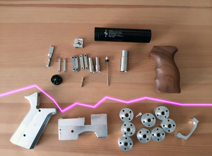 Можно допилить, добрать детали сверху и остальные, либо упростить, и получится крутой компактный пистолет. Тут рукоять под накладки, коробка, куча заредукторных, скоба, запор клапана