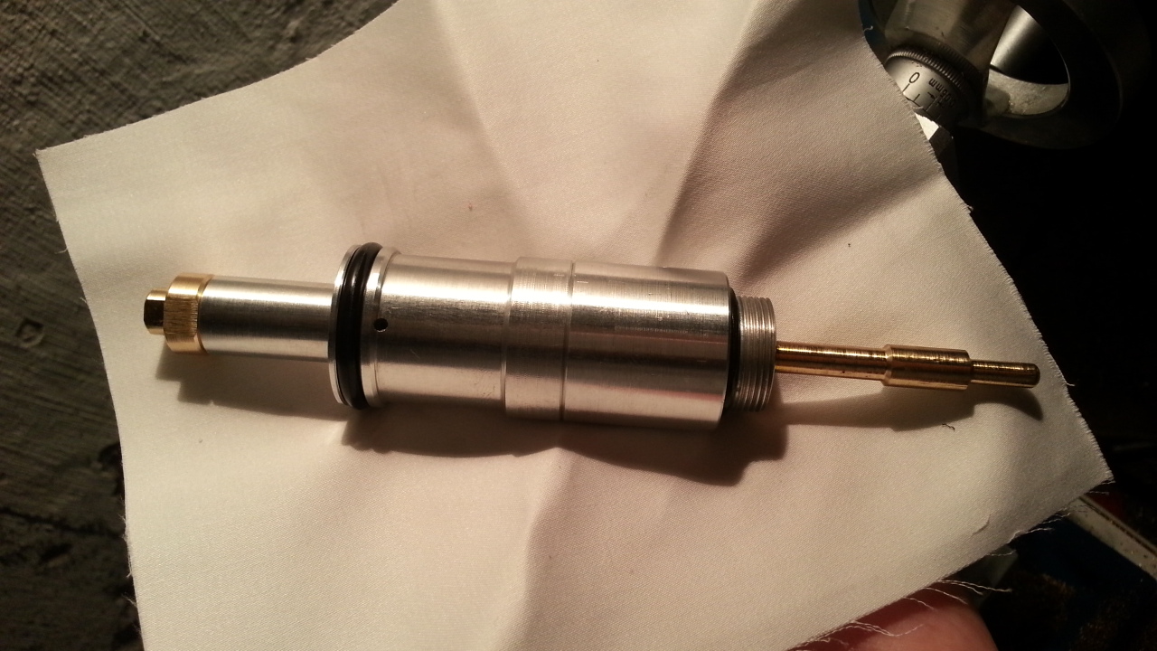 В ервую очередь я выкрутил поджим пружины насколько получилось, и посмотрел работу на минимальном расходе - получилось около 0,8Атм дотекания в течении 20секунд, и если это не шланг виноват, то вот они и видны, те самые 0,5% погрешности, в виде дотекания на 1 атм. Хотя КМК для таких давлений дюза 0,5 будет быстрее, но это я позже уже проэксперементирую. Но и заредукторный объем большой, поэтому и заполнение медленное.