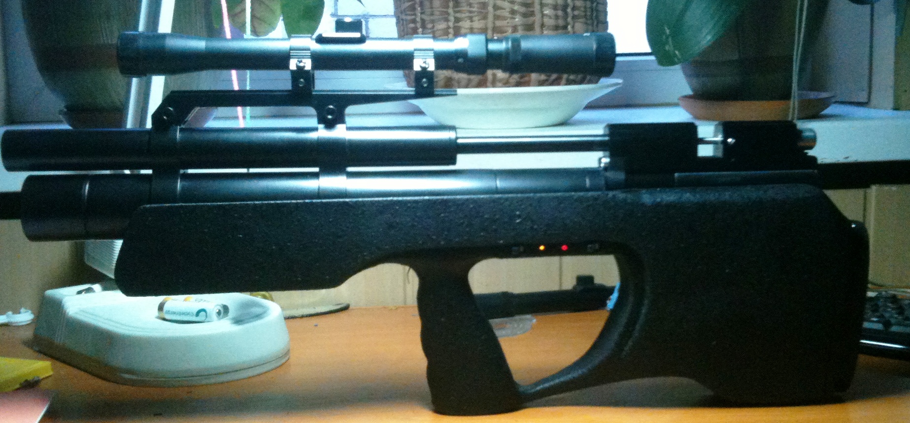 И я сегодня собрал свою "крыску", отстрелял , скорость **18 при 3-х м\с, с 200 до 130 бар 40 шутов, но редуктор у меня трохи натекает :-( , что не есть хорошо :de_vil:. Прицел для понта :-):