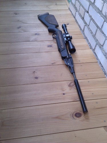Очень хотелось пластик облагородить ) Деревянные вставки действительно не лишние и подогнаны под среднюю антропометрию. Тыльник приклада на саморезах, между прикладом и тыльником находятся шайбы. При необходимости можно шайбы убрать или добавить. Надульник -это не модэратор. Не глушил звук специально, потому что он не громкий и приятный. Центр тяжести лежит чуть впереди спусковой скобы. Для меня это оптимум при стрельбе стоя. Ложе утяжелено но имеет резерв к прибавке веса и перецентровке. Механизм отлажен и работает мягко и безшумно. При взводе слышно только два щелчка - перелом ствола и когда стала на взвод. При выстреле - сухое ТАХ!