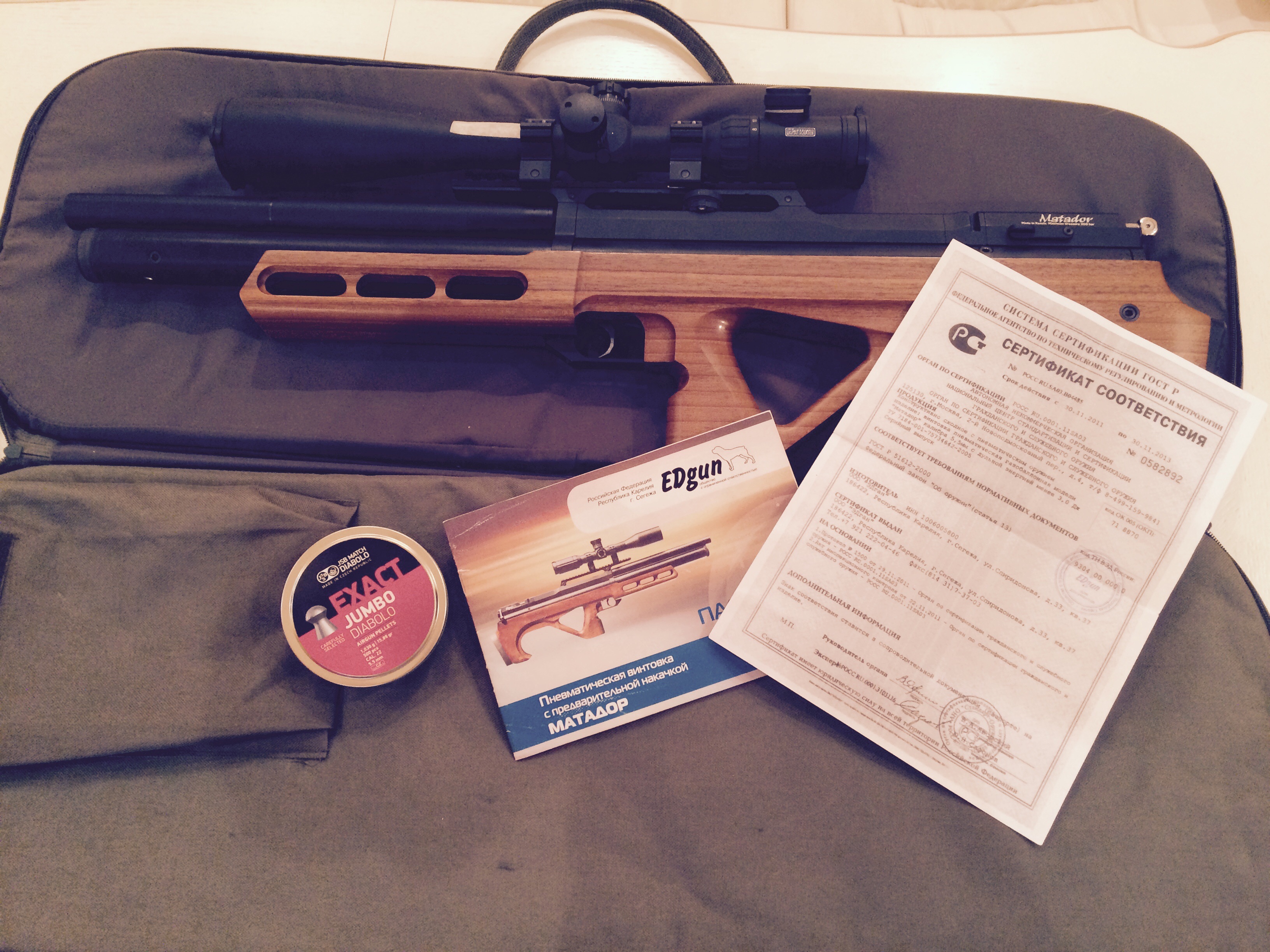 Комплект: матадор, чехол, сертификат, зс, полбанки пуль